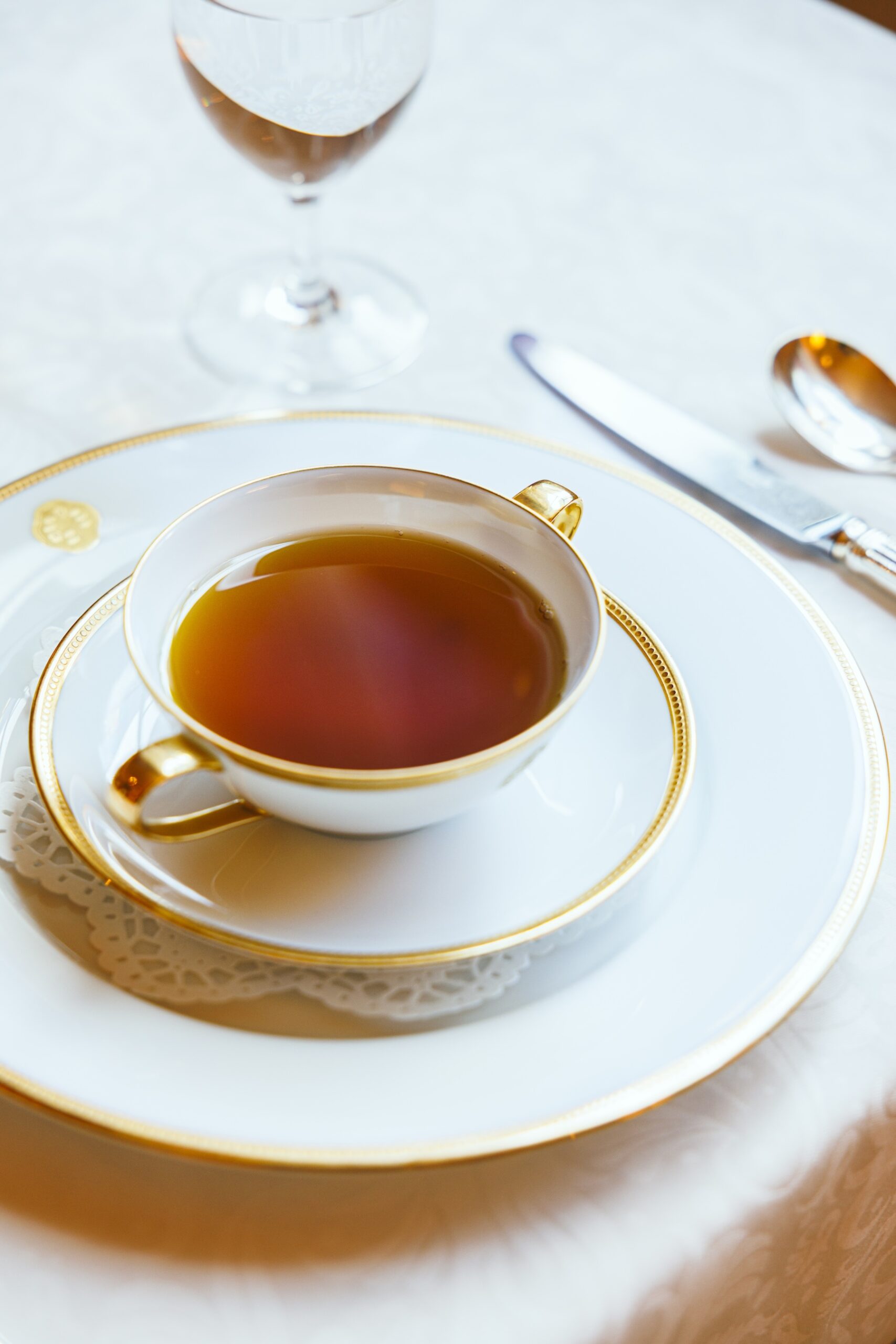 歴代の調理長のレシピを受け継ぐ味。牛すね肉や香味野菜を1日じっくり煮出して生まれる、澄んだ味わいのスープ。伝統のコンソメスープ 1,600円