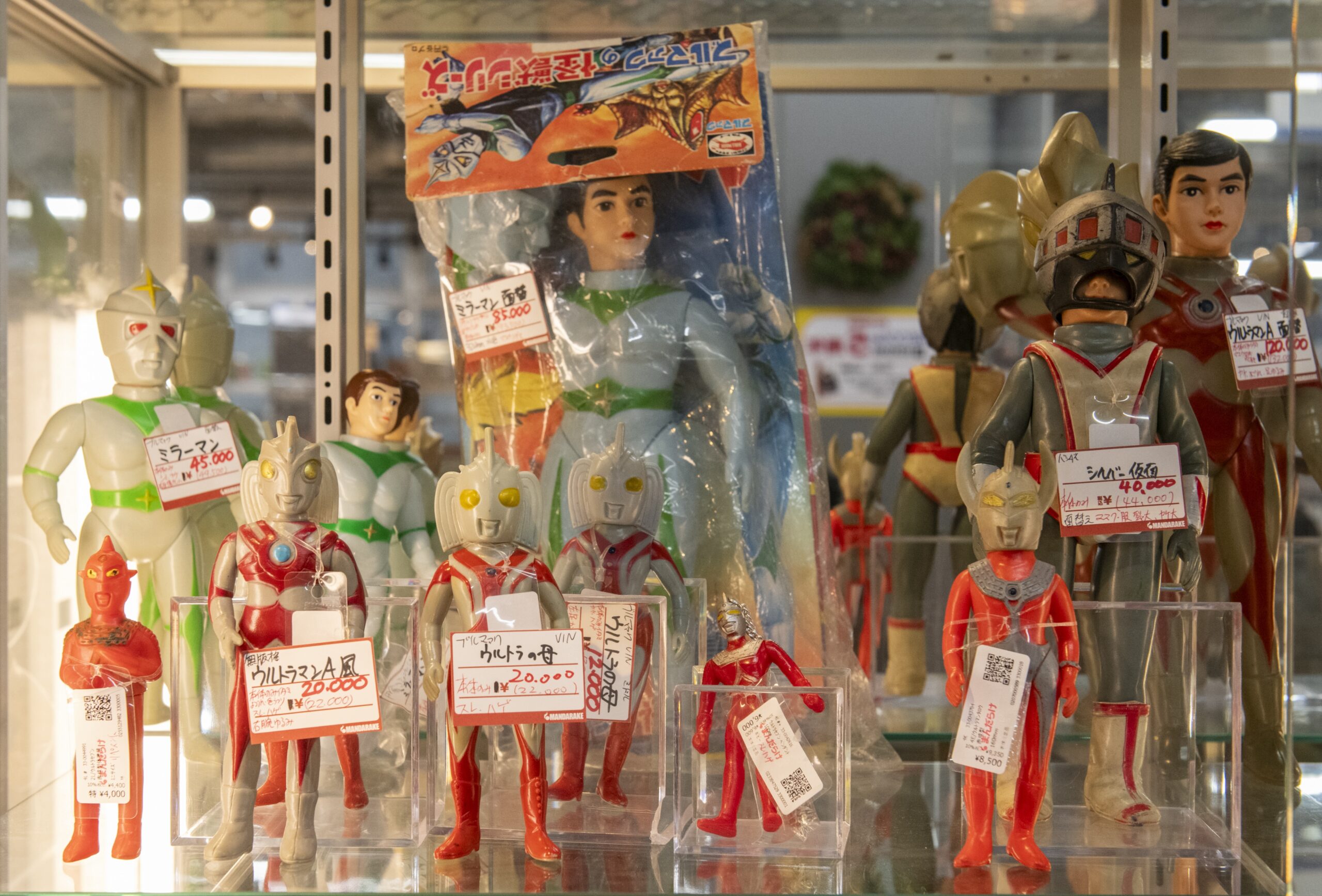 「ヴィンテージ・ソフビに関しては、海外のお客様は、これまではゴジラやウルトラマンなどのメジャーなキャラクターのソフビを購入される方がほとんどでした。でも、今は無版権ソフビやマイナーなヒーロー、レアな彩色バージョンのものなど、よりマニアックでドープなものの人気が高まっているという印象です。日本人以上に日本のソフビについて熱心に勉強しているのかもしれません。人口が多いアジア圏でコレクターが増えた結果、ヴィンテージの価格が高騰している状況です」