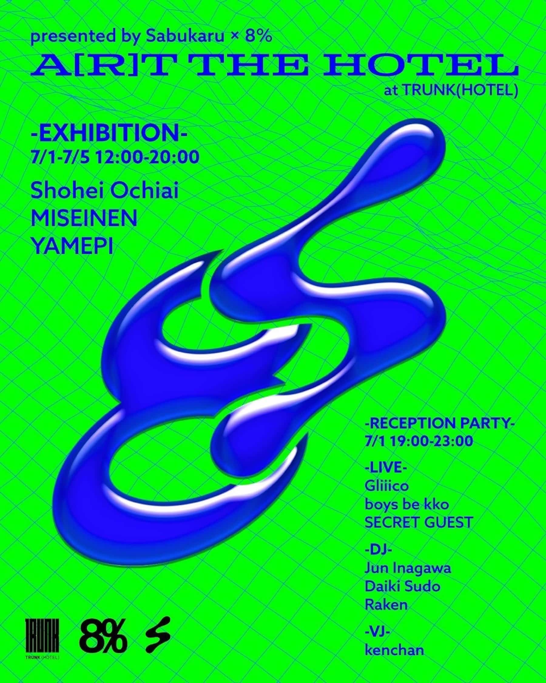 2022年7月に渋谷のTRUNK(HOTEL)で開催されたSabukaru×8%のアート展『A[R]T THE HOTEL』。アーティストの落合翔平さんと未成年さんによる展示。