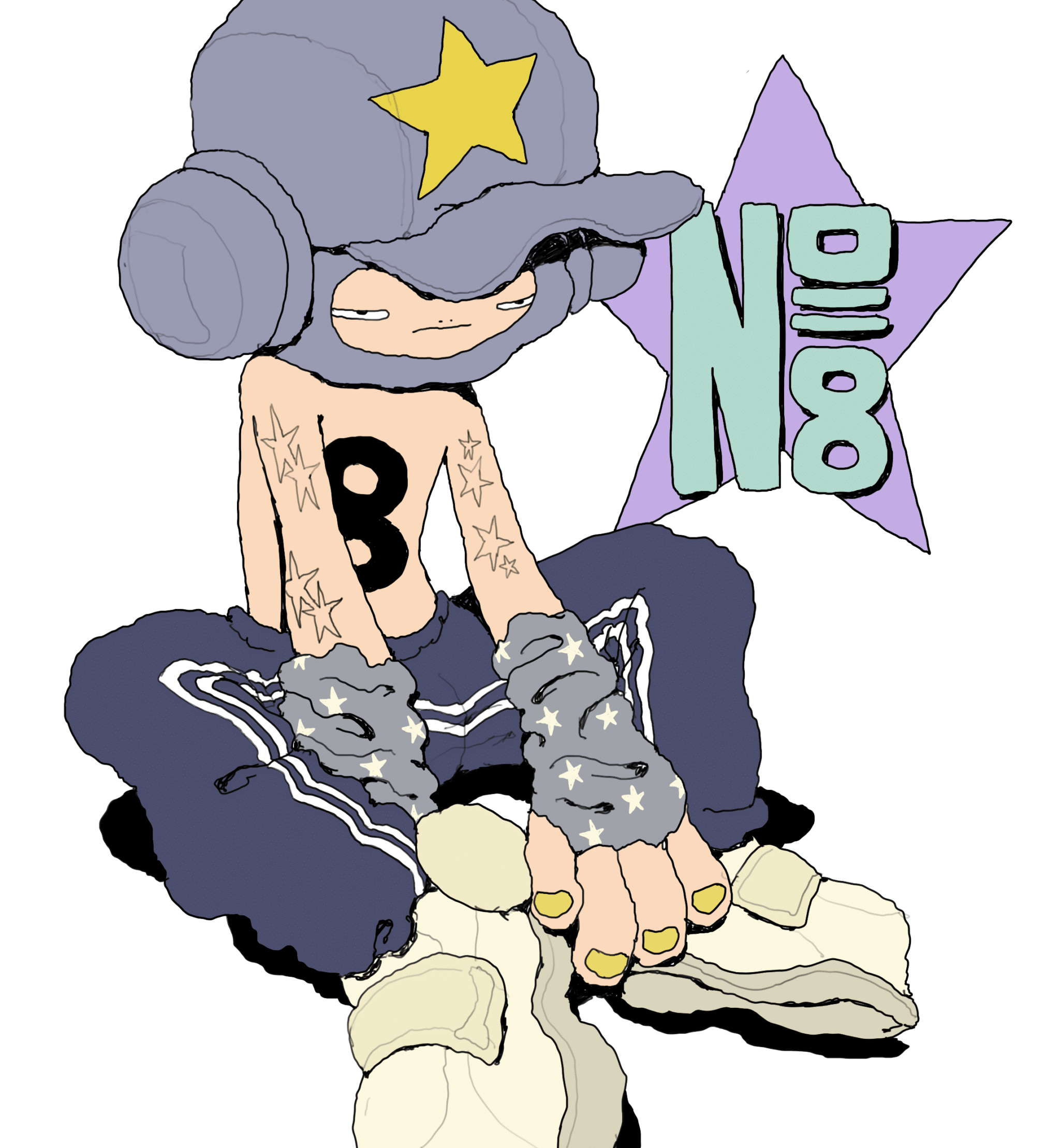 自分がヒップホップやストリート系のファッションが好きだったので、そういったスタイルをしたキャラクターを描いてましたね。今の「BOYS」ではなく、大学の頃に描いていたのはフーディを被っていて目だけ見えている感じのキャラクターです。でも、これだと表現の幅が狭いなと感じ、もう少し自由に描くことができて、自分のスタイルに合っているキャラクターはないかなと試行錯誤しているうちに誕生したのが「BOYS」です。