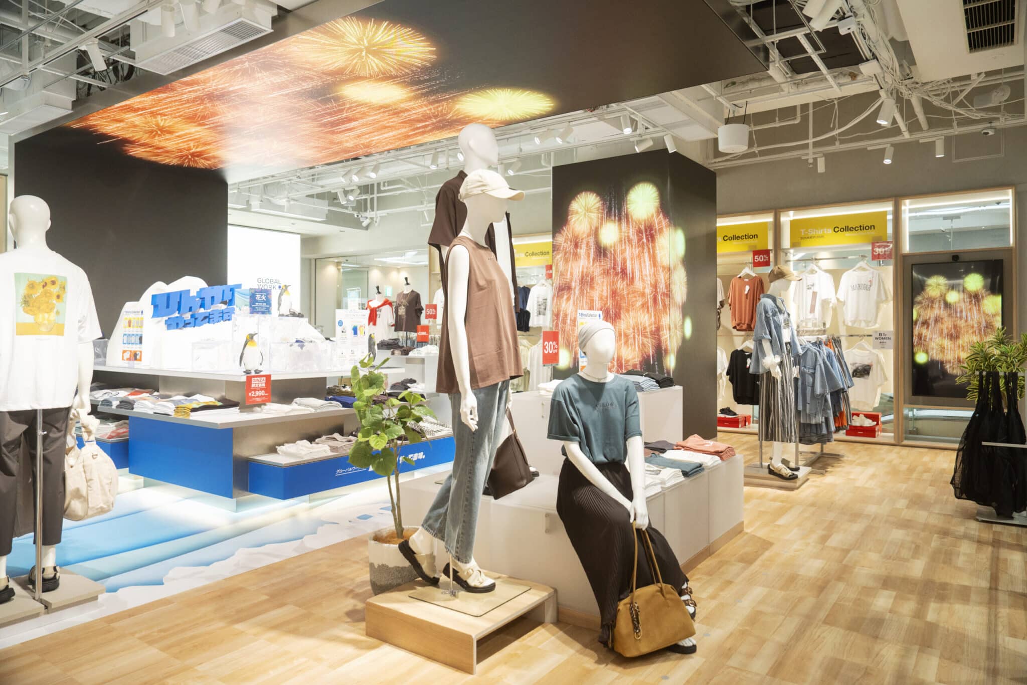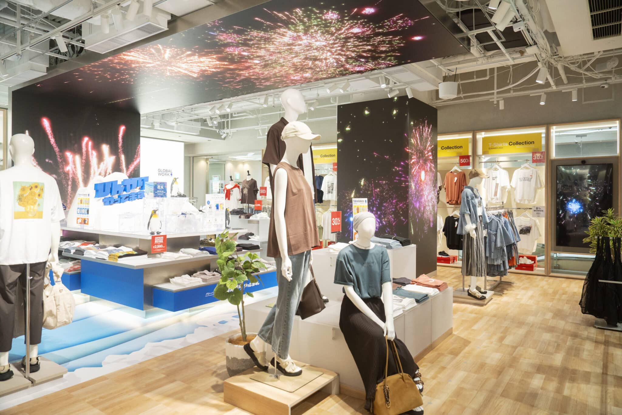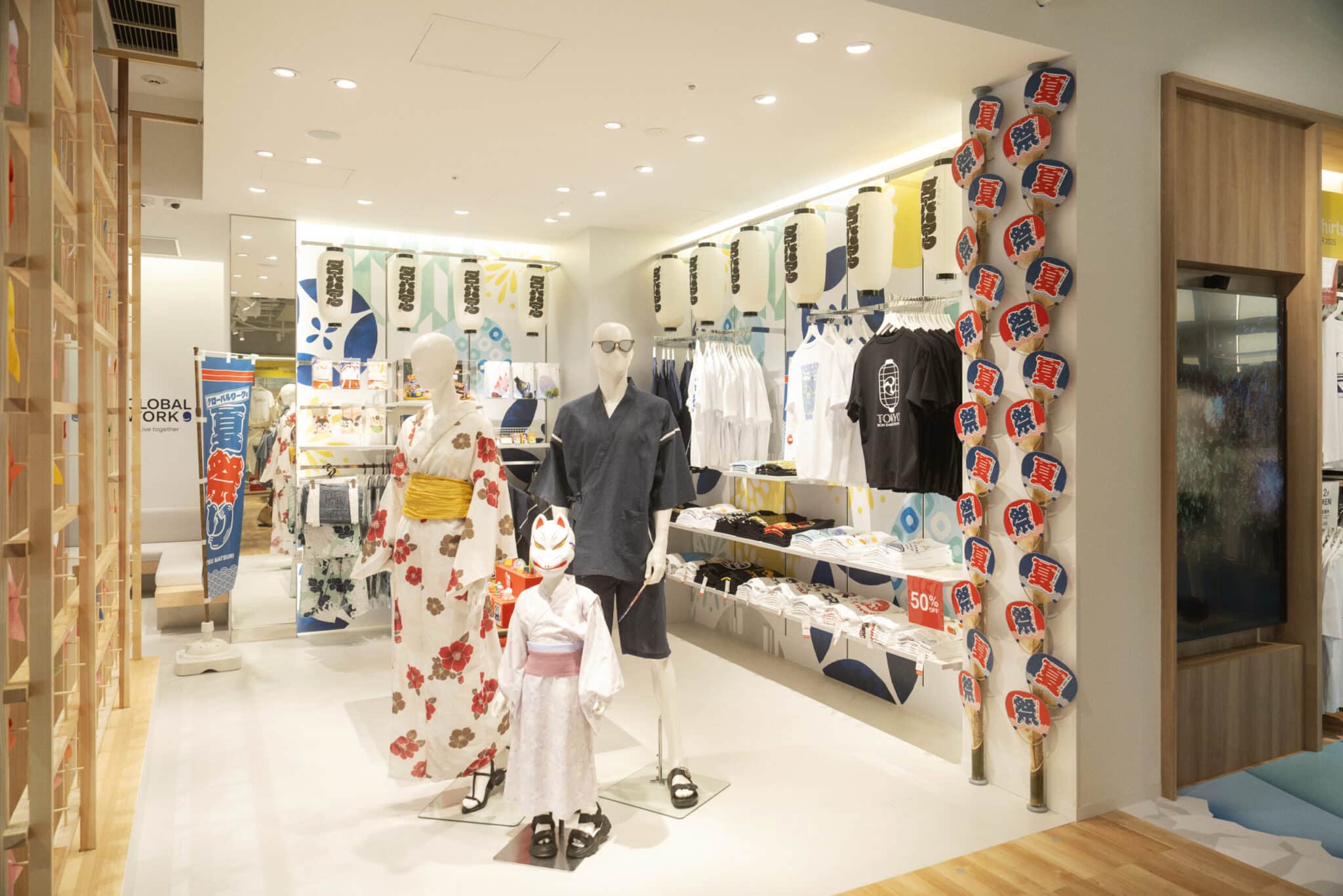 PRLocated on Ginza's Marronnier Street, where people from around the world converge, GLOBAL WORK GINZA offers a unique initiative through its Japan Content Corner on the first floor. Here, visitors can experience authentic Japanese culture through seasonal merchandise and immersive store displays. Since July, the store has been showcasing natsu matsuri (summer festivals), featuring traditional summer garments like yukata and jinbei, alongside spectacular festival displays and digital signage featuring fireworks. This is truly a complete "Japanese summer" experience—a rare opportunity you can only find here.