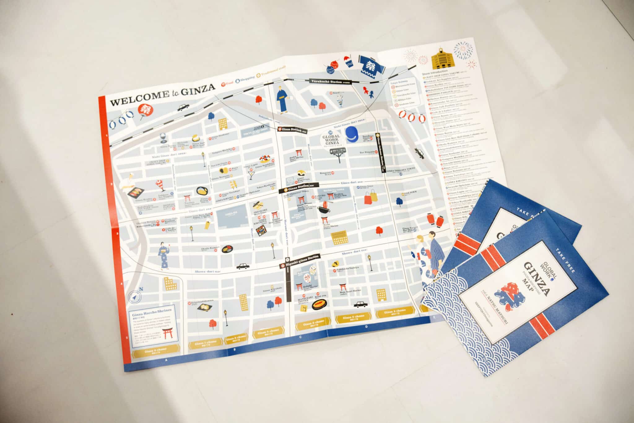 Beyond GLOBAL WORK GINZA, this MAP is placed at distinguished Ginza shops, tourist information centers, and nearby hotels, serving as a tool that "connects the Ginza district."