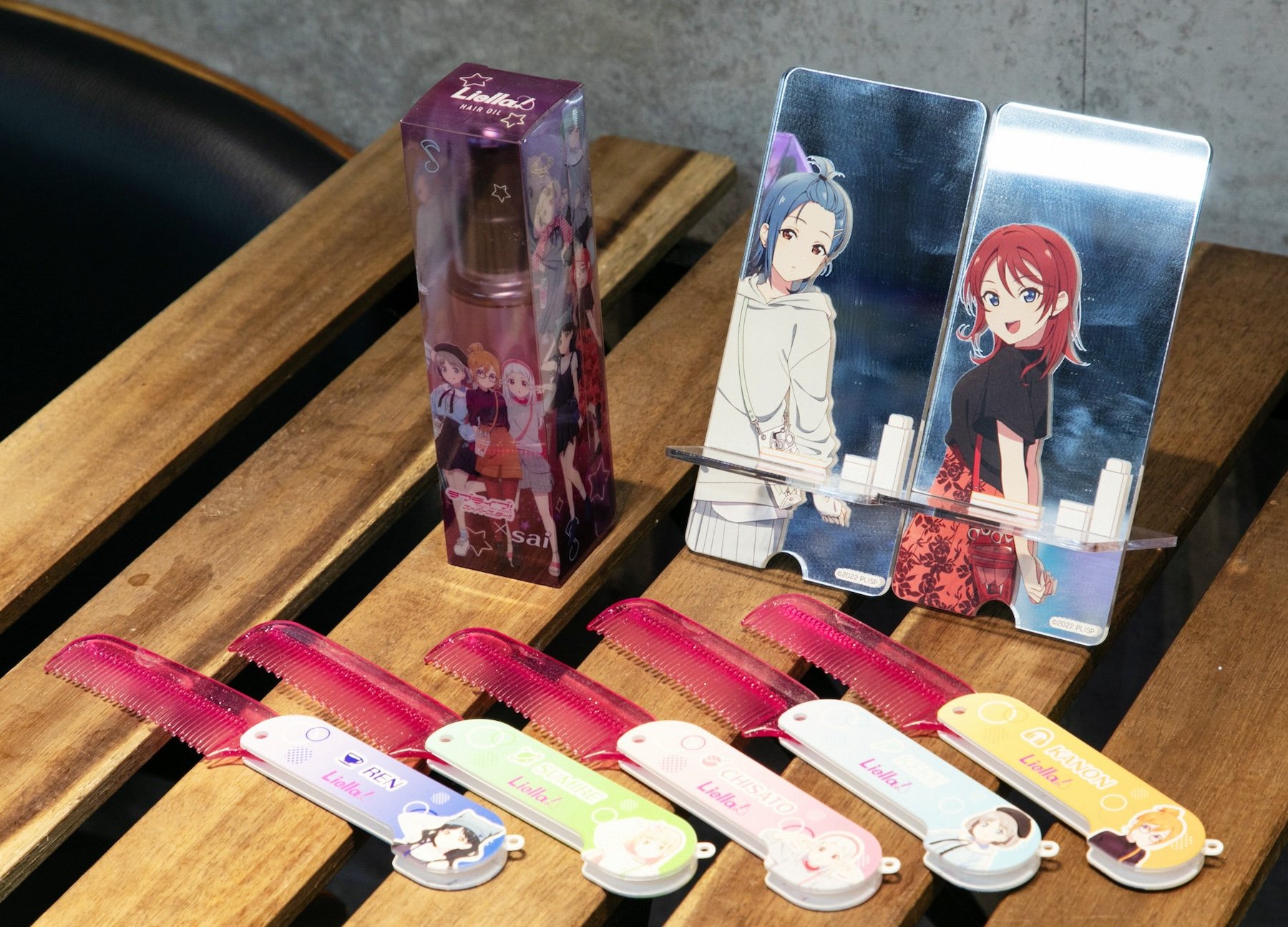 An official collaboration with the anime "Love Live!" began in July 2024, drawing strong attention from fans. The salon displays a wide range of related merchandise and also sells original items, including limited-edition acrylic stands, folding combs, and hair oils. Each character’s items are so popular that some often sell out.