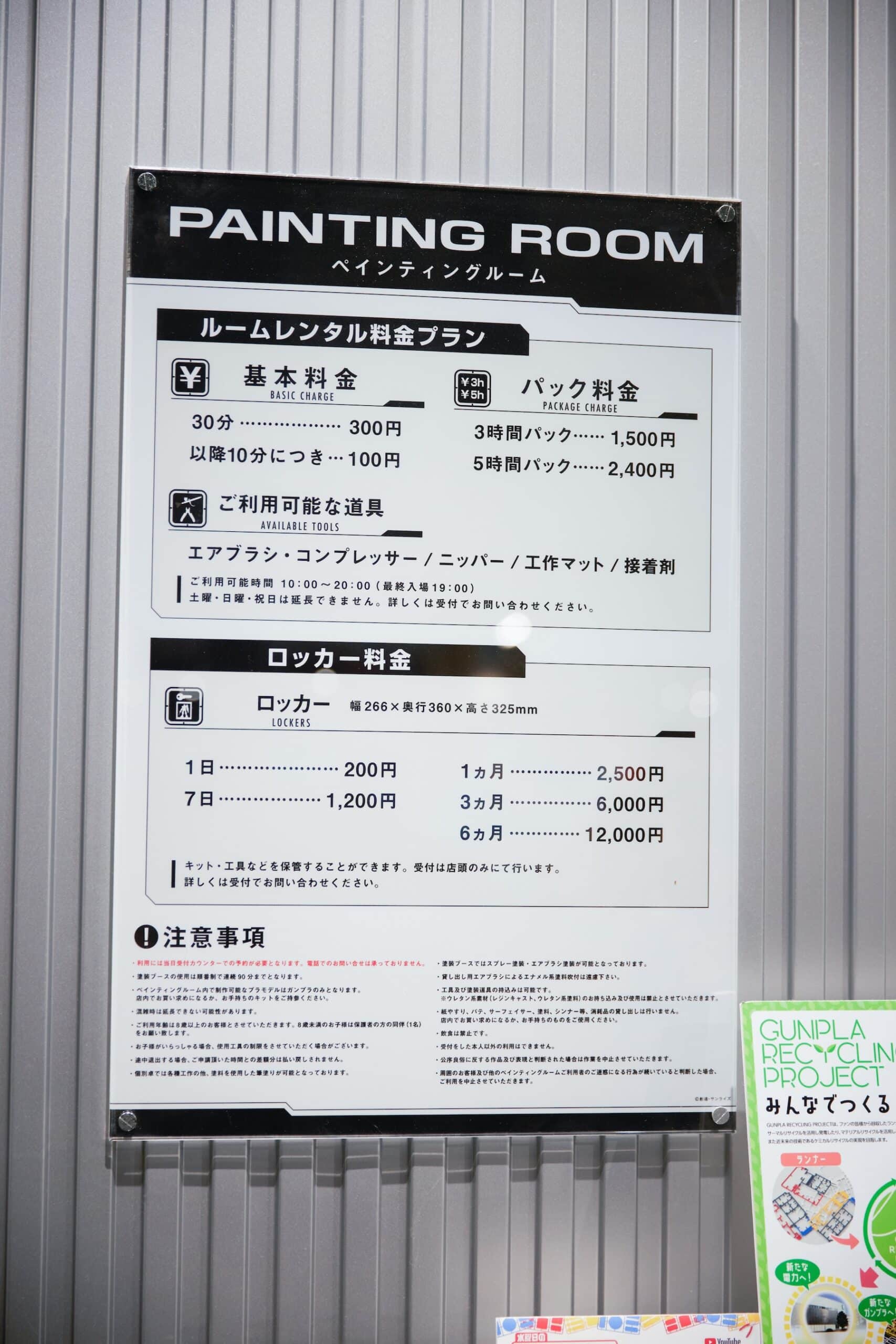 Beyond the shopping area, the Builders Zone features an operational "Painting Room"—a rental space (a fee is required) where visitors can paint Gunpla they've purchased. The room offers rental equipment that might be impractical for home use, such as airbrushes and compressors. Visitors can also receive guidance from staff members known as "Gunpla Meisters" and can take photos of their creations using impressive diorama setups. This facility showcases that Gunpla enjoyment extends far beyond mere assembly.