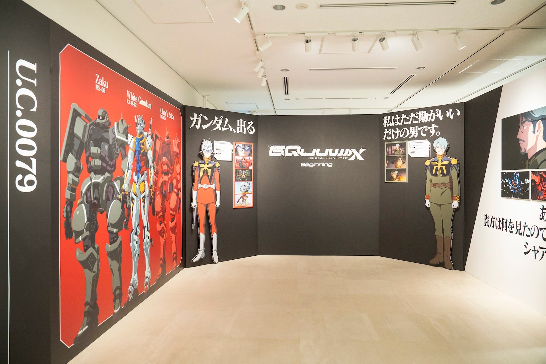 The second-floor special exhibition space focuses on individual series. The "Mobile Suit Gundam GQuuuuuuX -Beginning-" exhibition featured AR photo zones with character motifs and photo spots recreating scenes from the series. ©Sotsu・Sunrise
