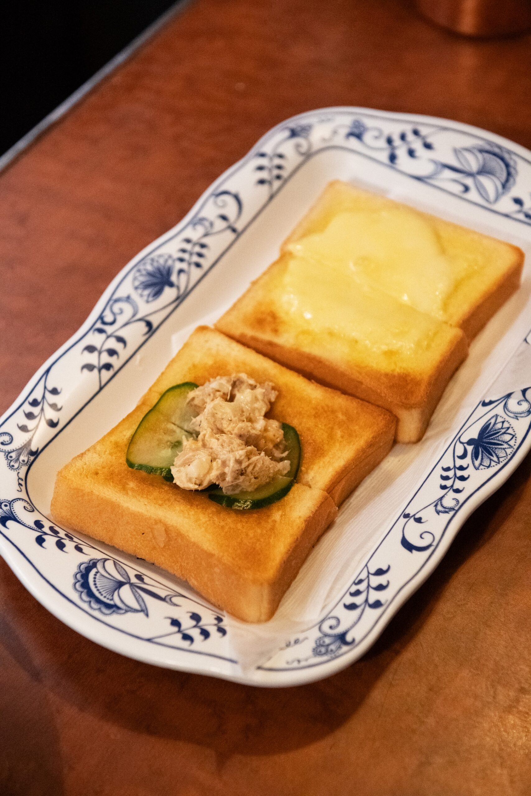 "SABOR," a long-established coffee shop located in the famous Jimbocho used bookstore district, offers a unique atmosphere that evokes the charm of the Showa era. Its retro red telephone at the entrance, cabin-style interior, and wooden chairs and tables, which convey a warm, inviting atmosphere, are among the shop’s distinctive features. Customers here enjoy a variety of items on the menu, including coffee, the popular pizza toast, strawberry juice, and the much-talked-about seven-color cream soda.