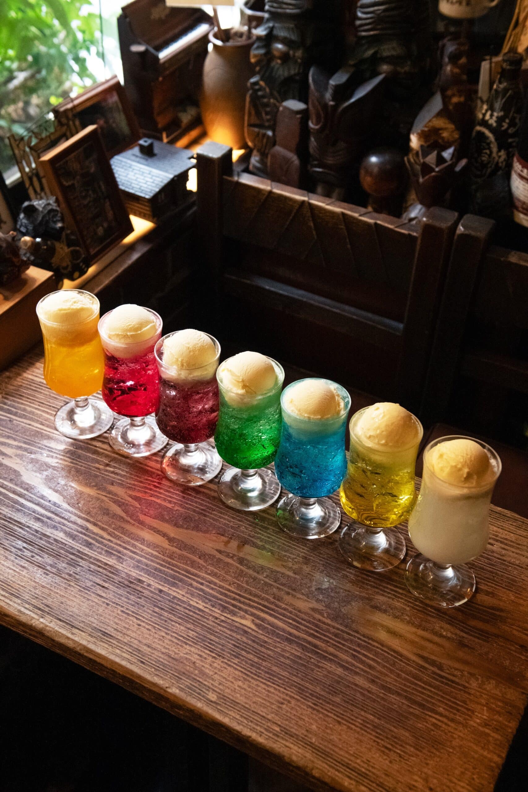 The seven-color cream soda, invented by the previous owner, comes in melon, strawberry, blue Hawaii, lemon, grape, and orange flavors, with the addition of Calpis flavor introduced alongside the release of a picture book. Cream Soda (Each 850 yen)
