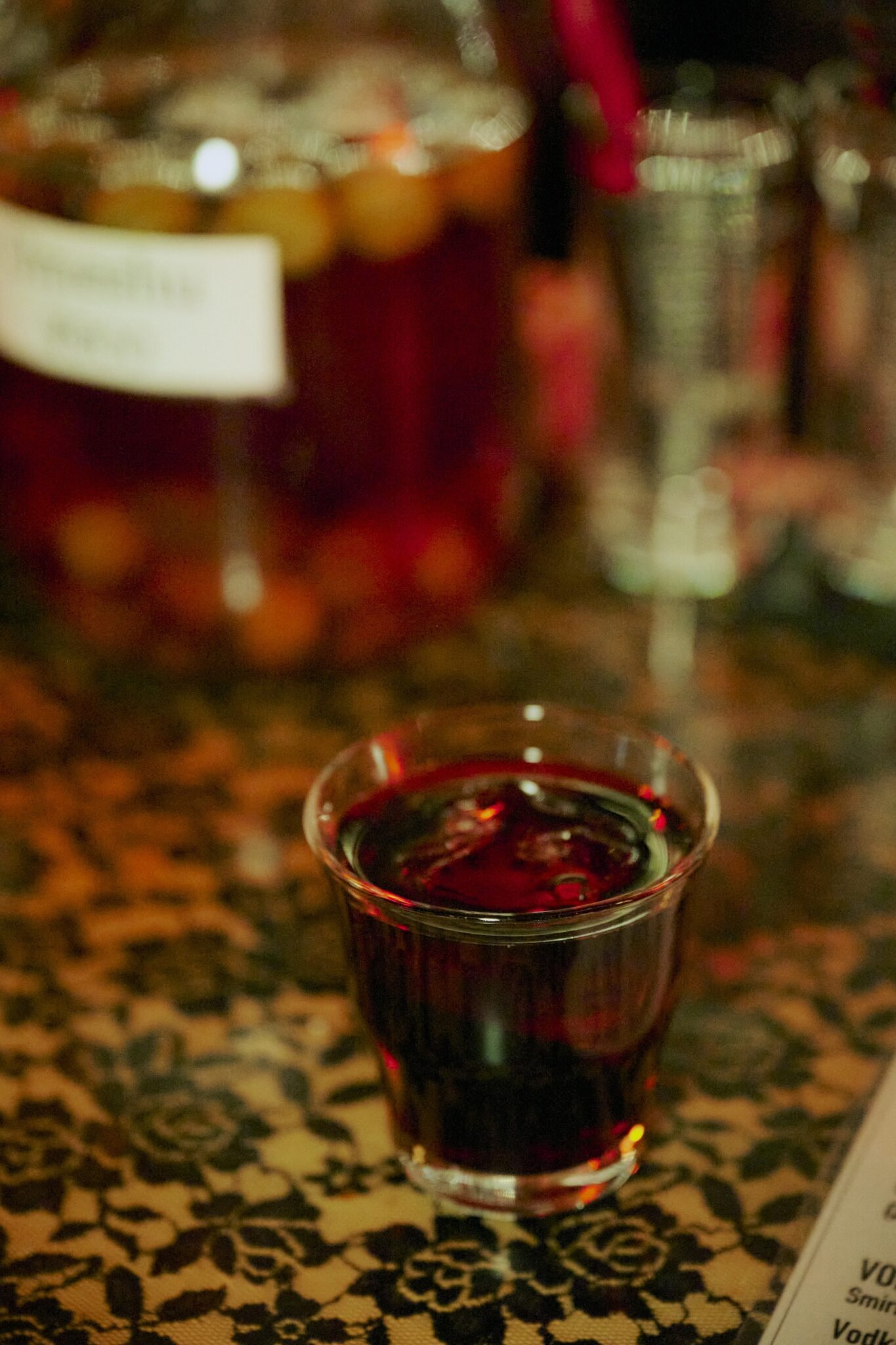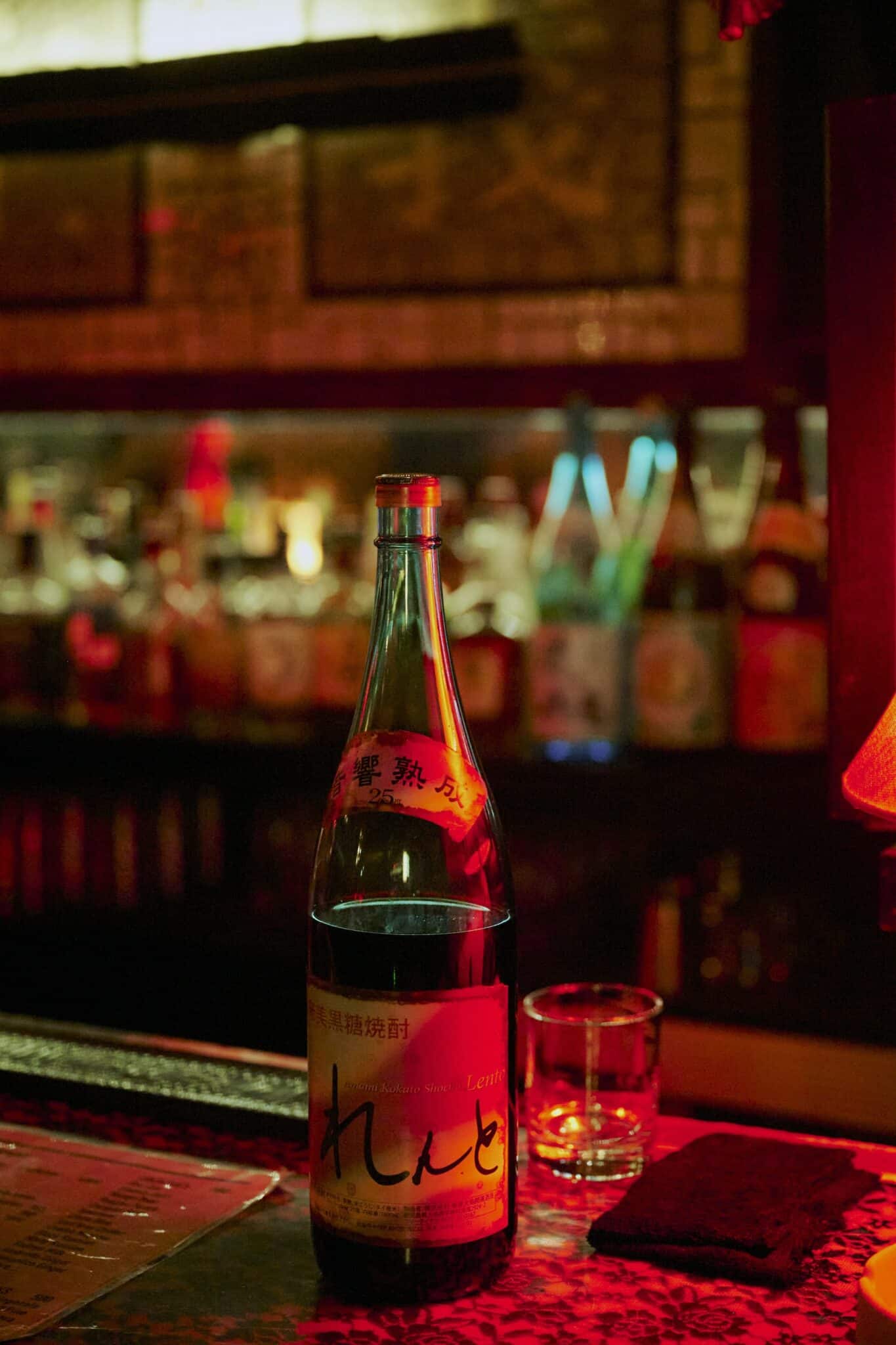 The bar’s signature owner, Sasage, prepares aromatic homemade coffee shochu.