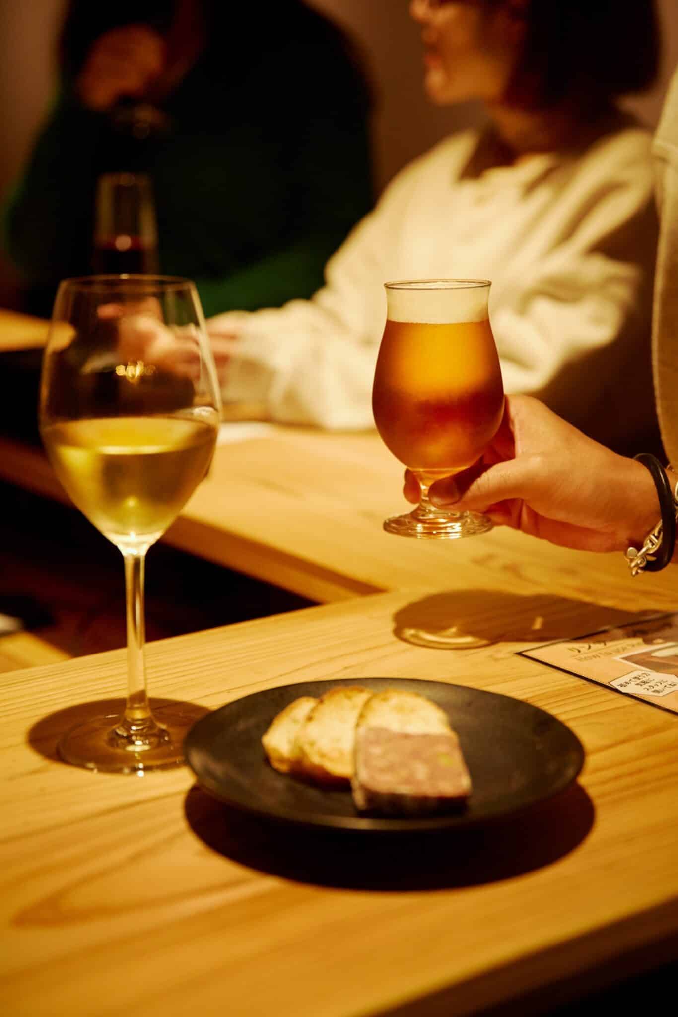 At the bar, the team offers a carefully curated selection of wines, chosen through repeated tastings with their in-house sommelier. The lineup features bottles from around the world—including Africa, the Americas, Europe, and Asia—reflecting regions familiar to many international visitors and often sparking conversation at the counter. In addition, Japanese sparkling sake and craft beer are also regular offerings, allowing guests to enjoy a wide range of flavors.