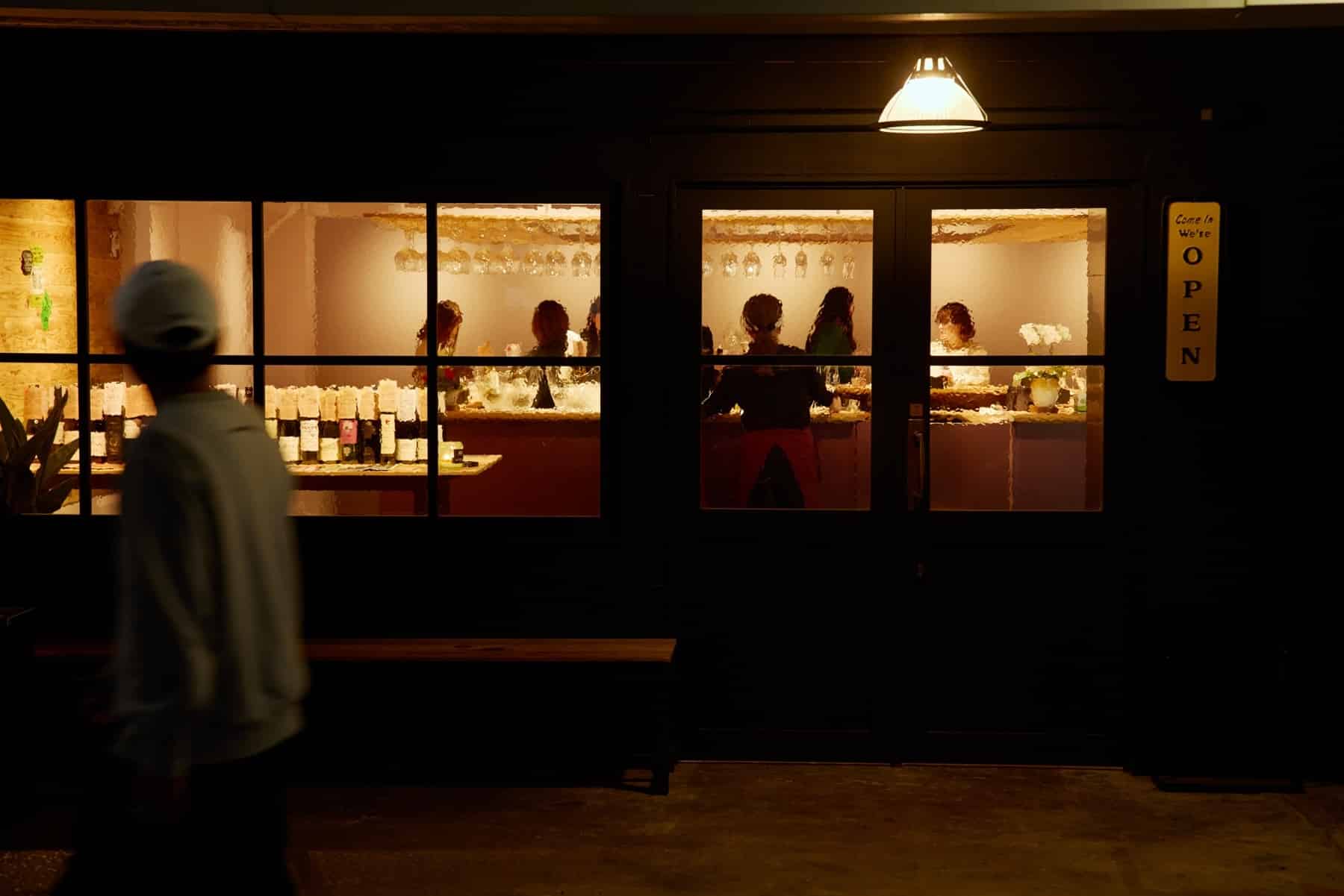 From the outside, you can see wine and people gathering inside—an inviting place to stop by.
