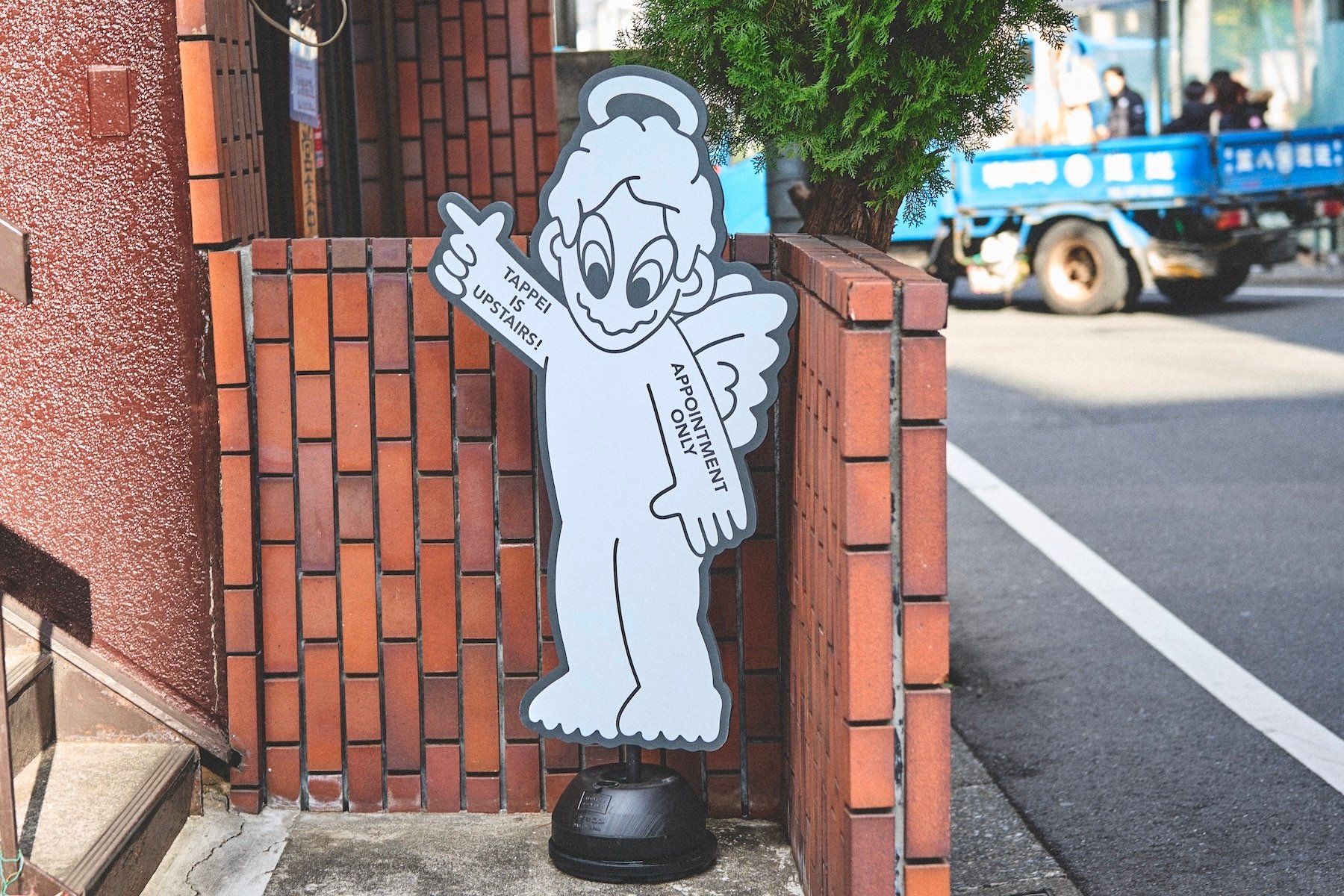 Outside, a sign featuring TAPPEI’s iconic “angel” illustration marks the entrance.