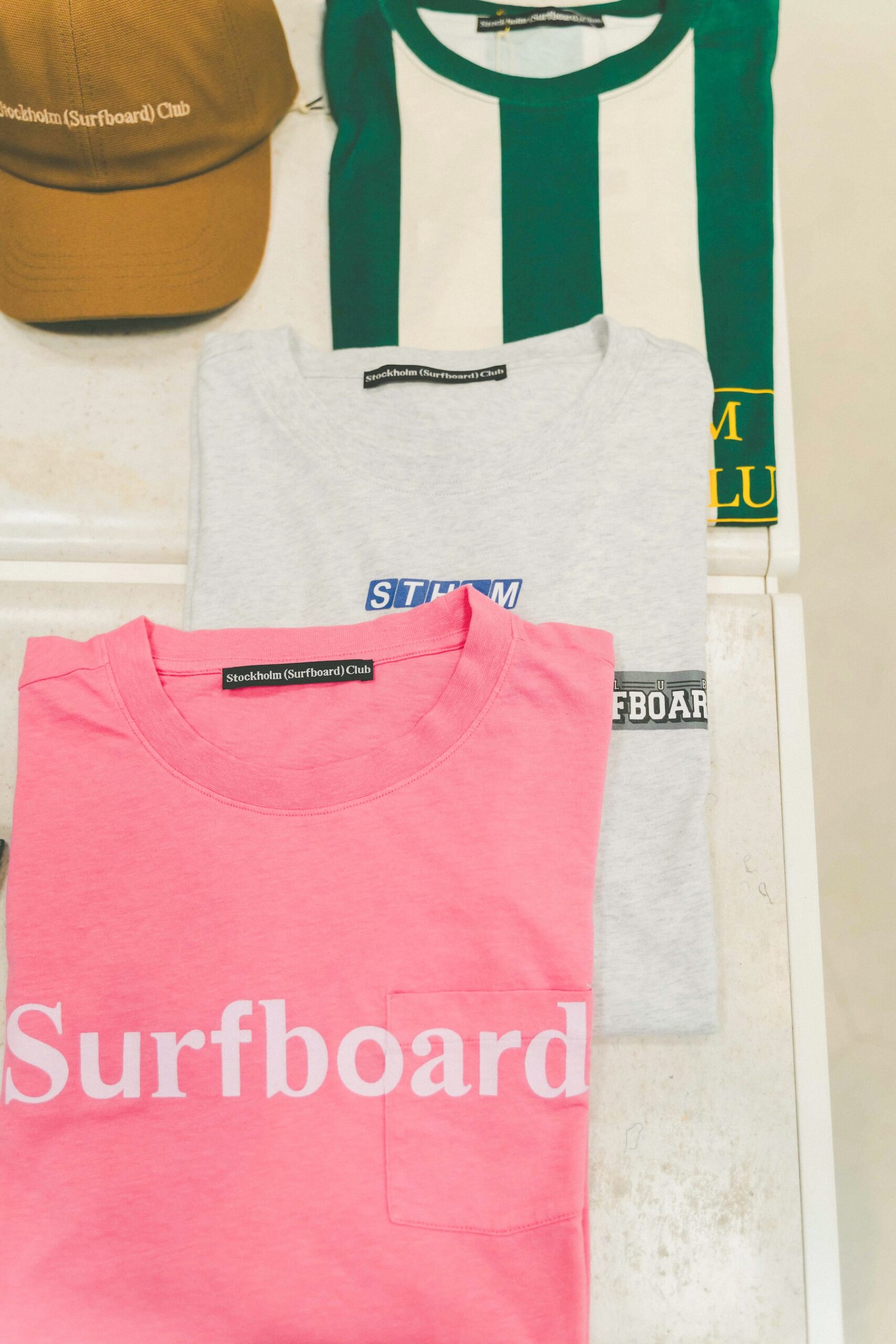 Products from STOCKHOLM SURFBOARD CLUB—a brand rooted in Swedish surf culture—were prominently featured at the center of the shop.