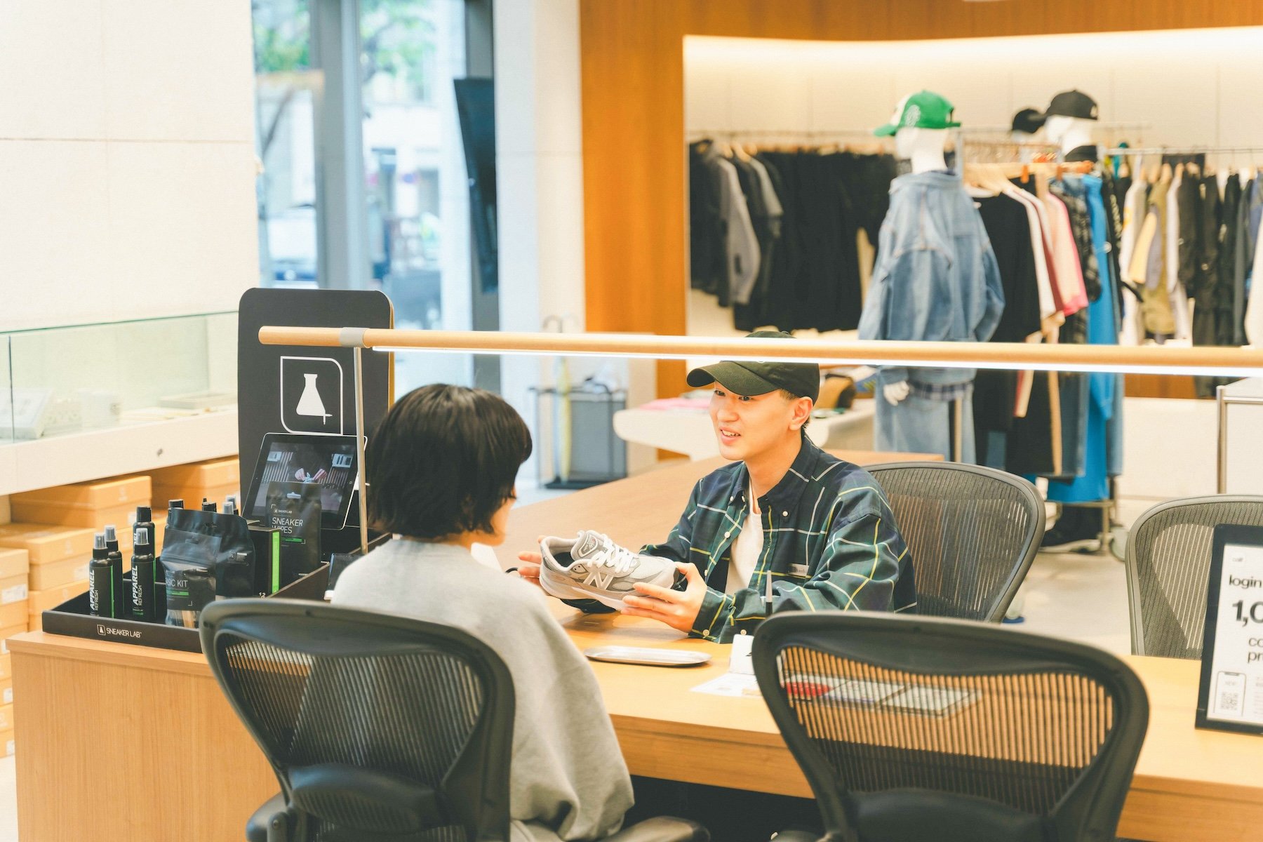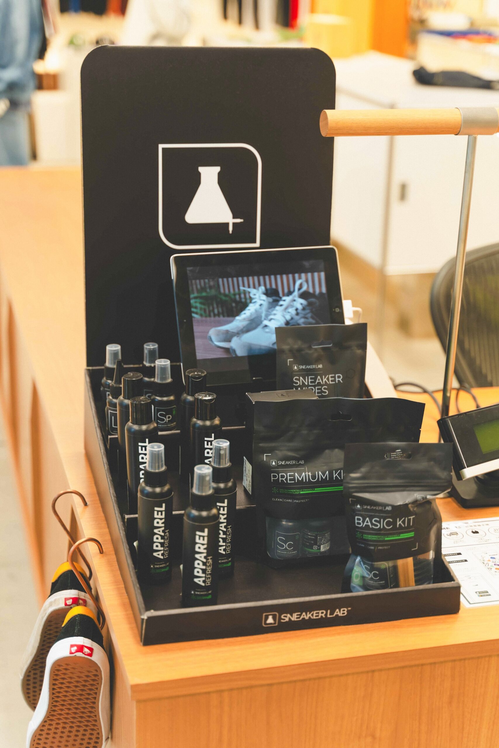 SNEAKER LAB uses bacteria and enzymes as ingredients in their sustainable shoe care products.Staff offer live demonstrations—feel free to ask about cleaning any shoes that need extra care.