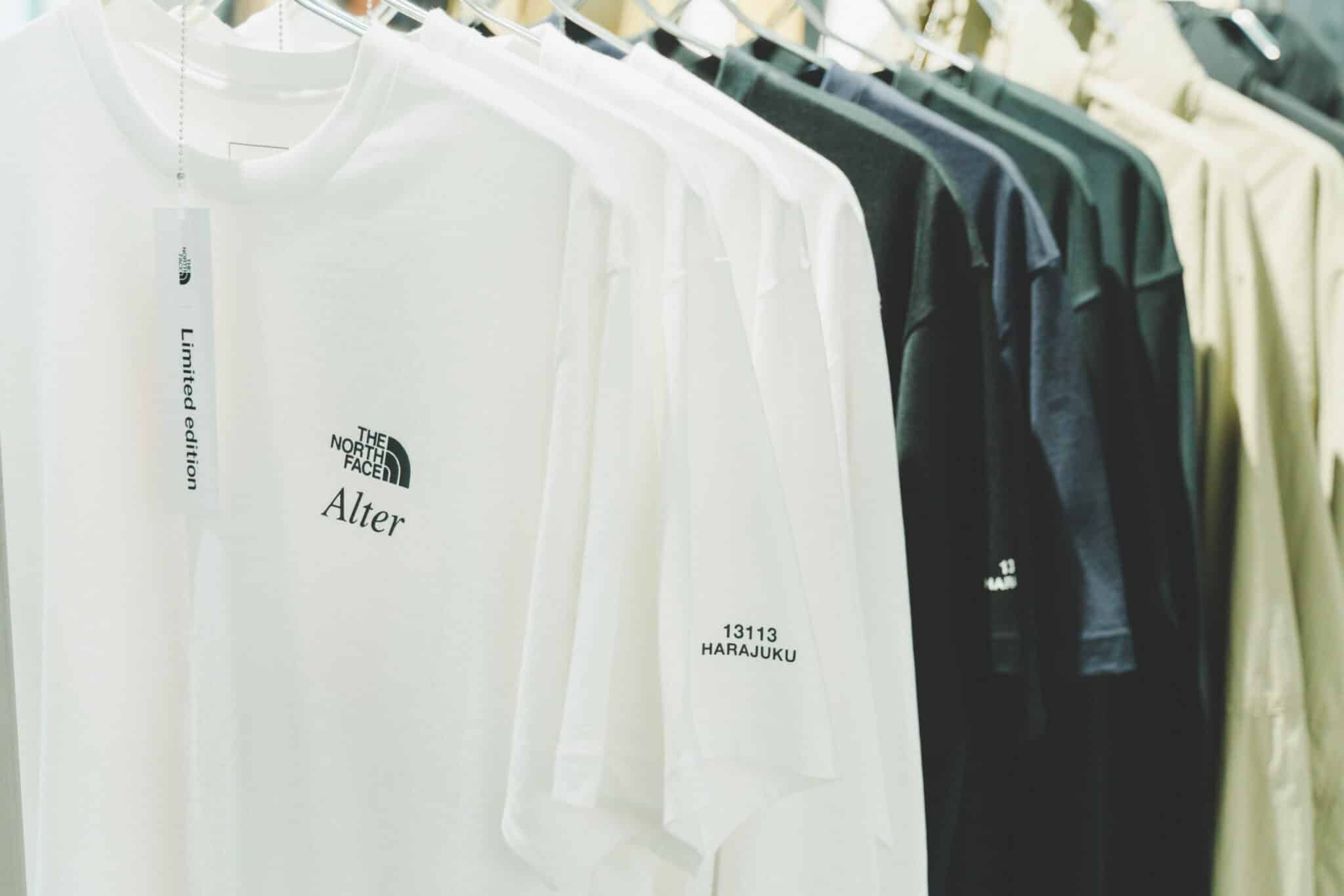 T-shirt with both brand logo and store name "ALTER". "HARAJUKU," referring to Tokyo’s Harajuku district, is printed on the left sleeve," the store’s location, is printed on the left sleeve.