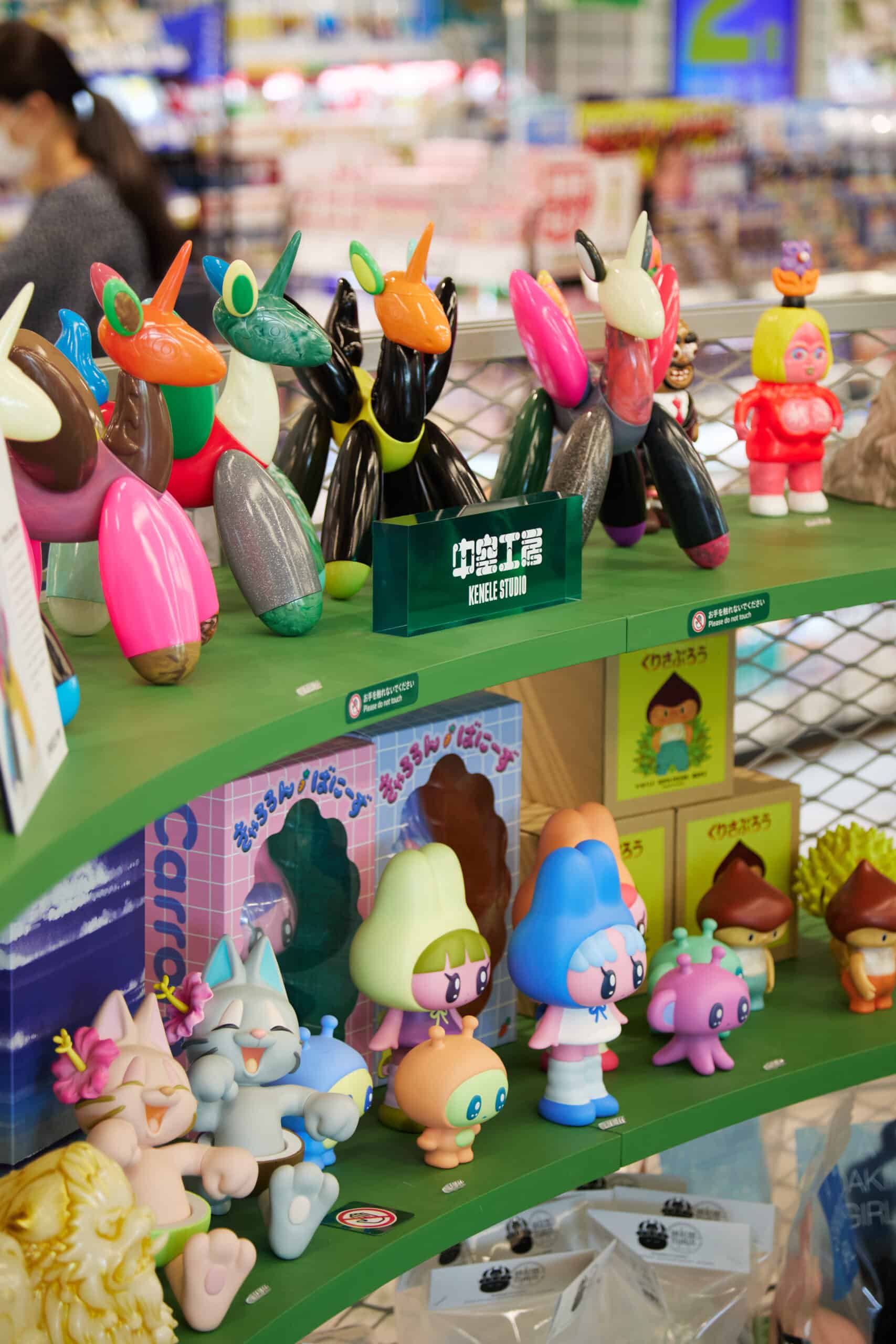 A shop where unique miniature toys, sofubi (soft vinyl figures), and figurines come together