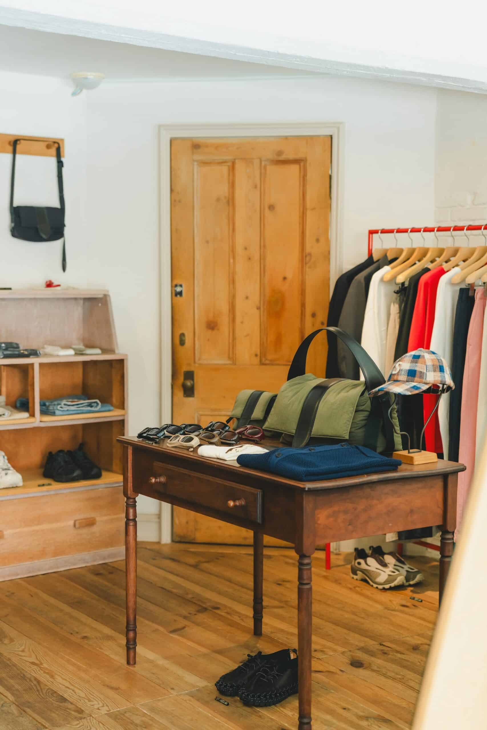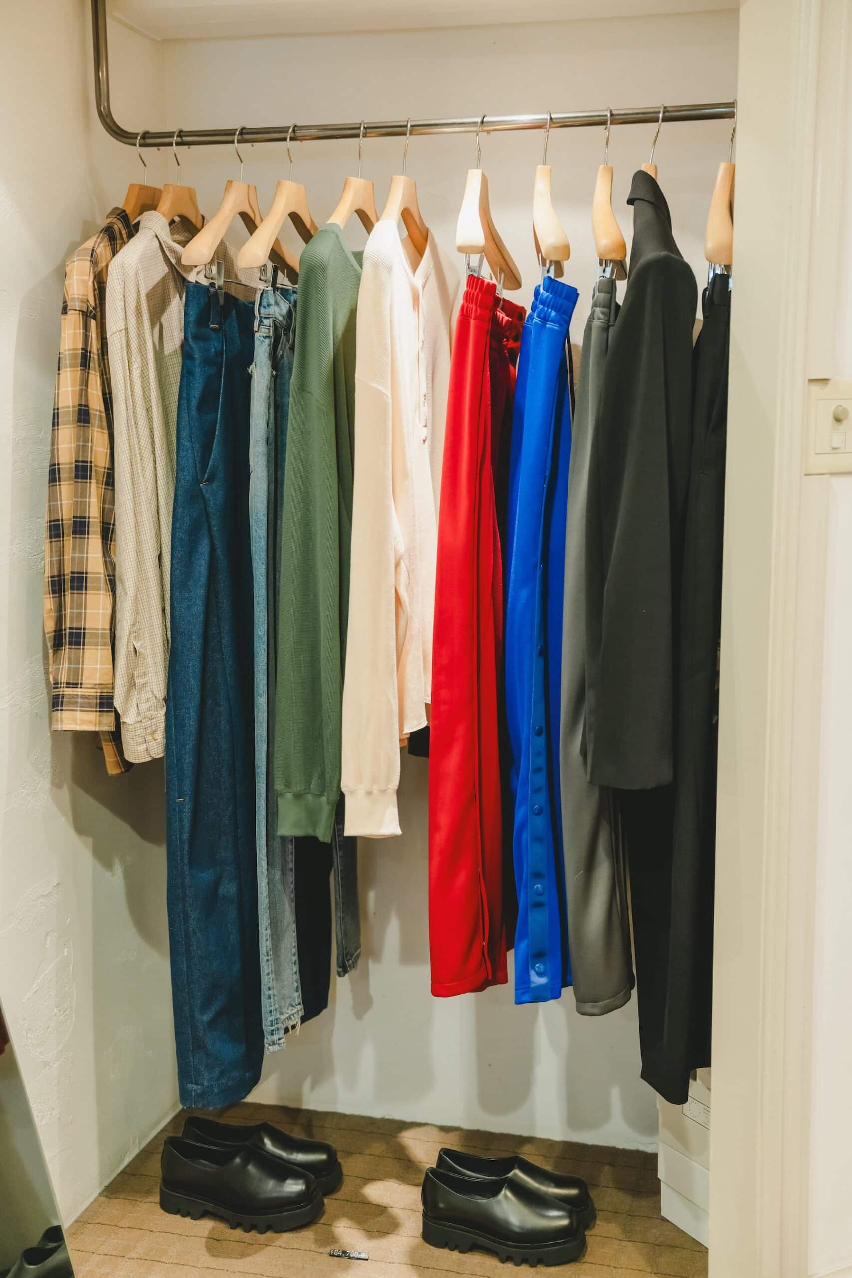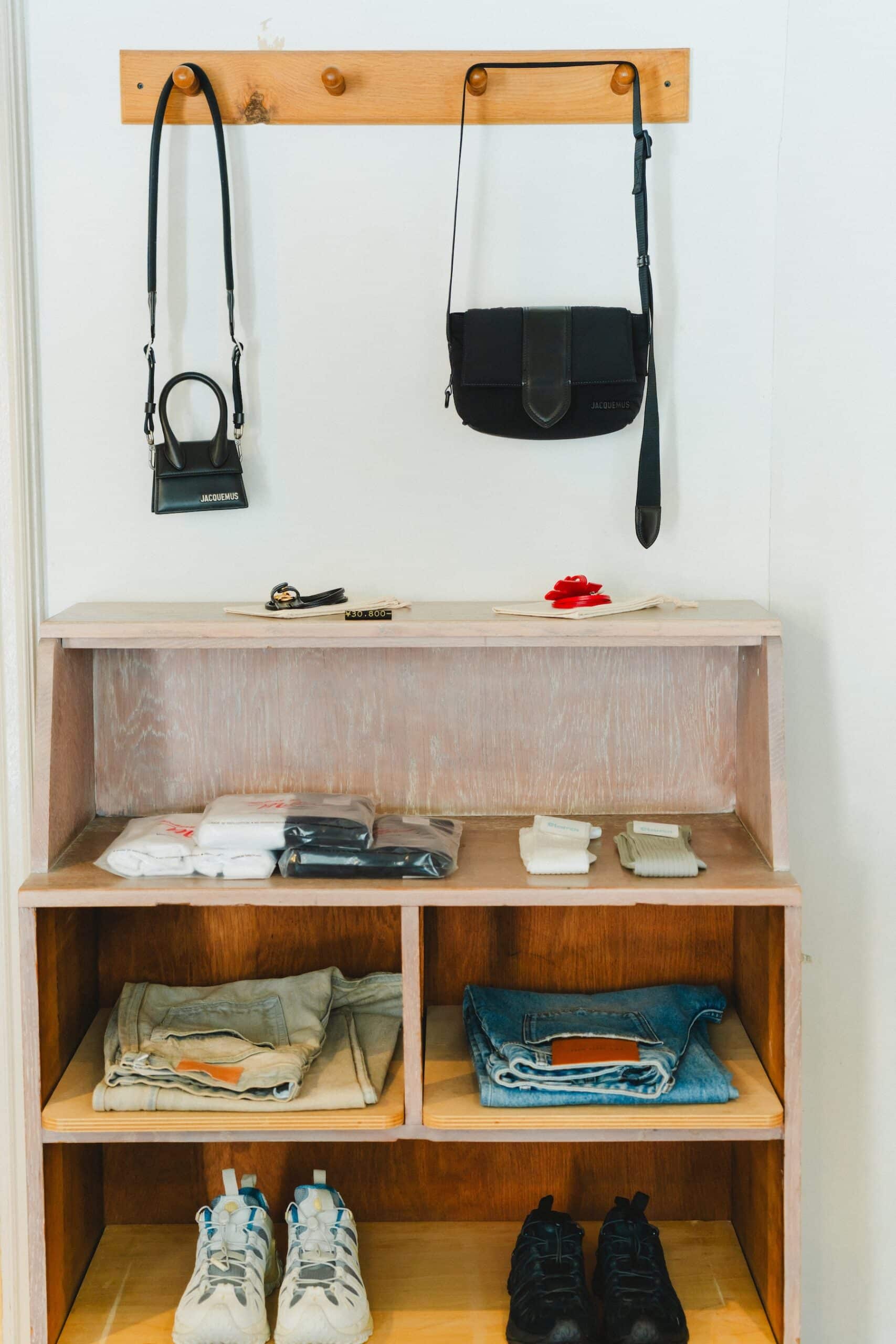 To the left is a space that feels like a walk-in closet, with carefully displayed apparel.