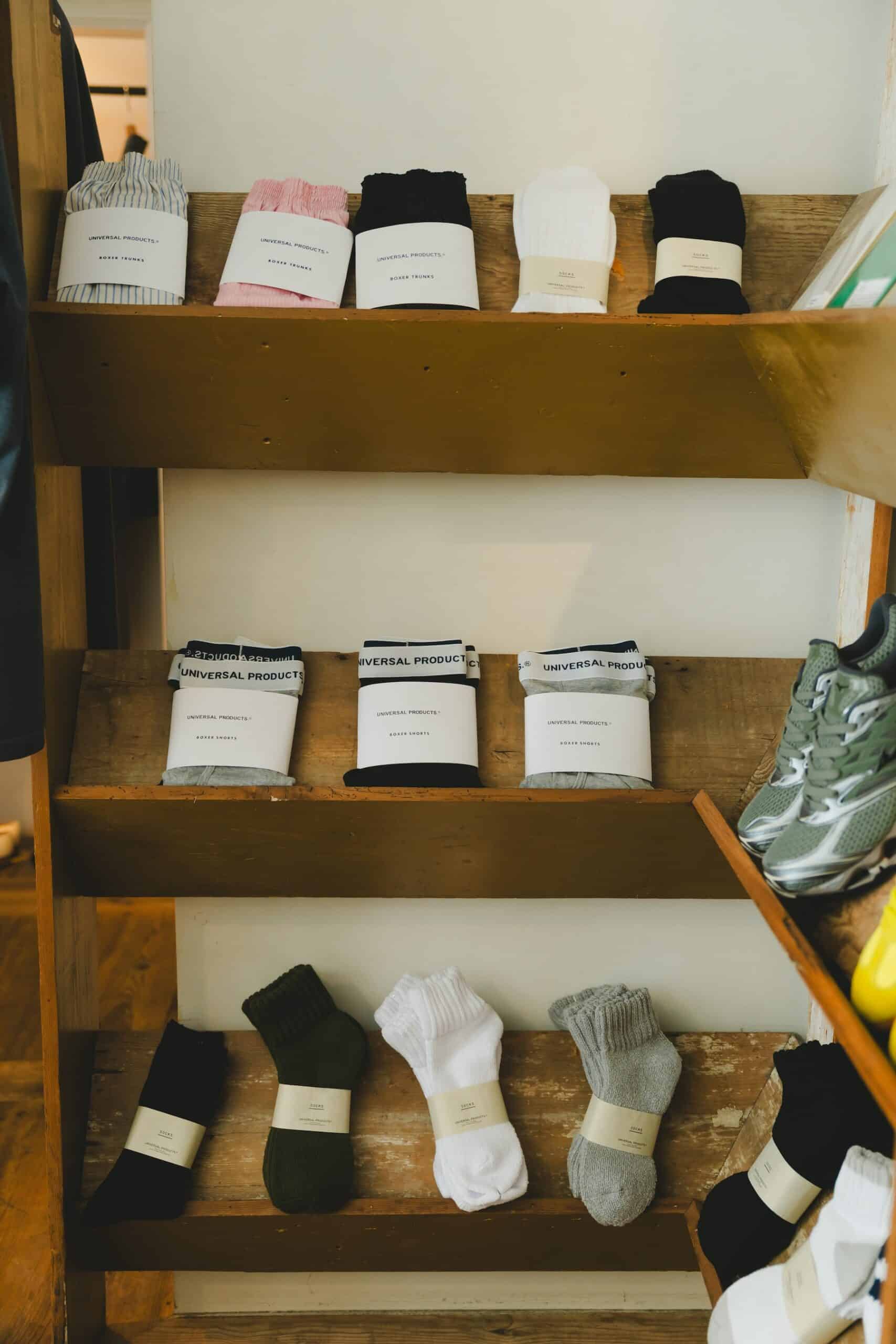 At 「UNIVERSAL PRODUCTS.」, shirts and pants are especially well-loved, while items like trunks and socks—with a wide variety of colors and styles—also make for great souvenirs.