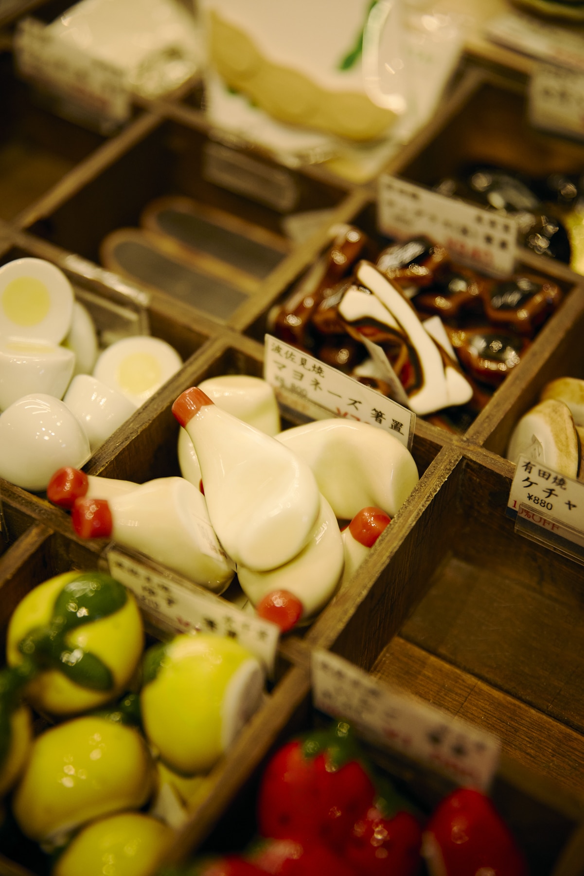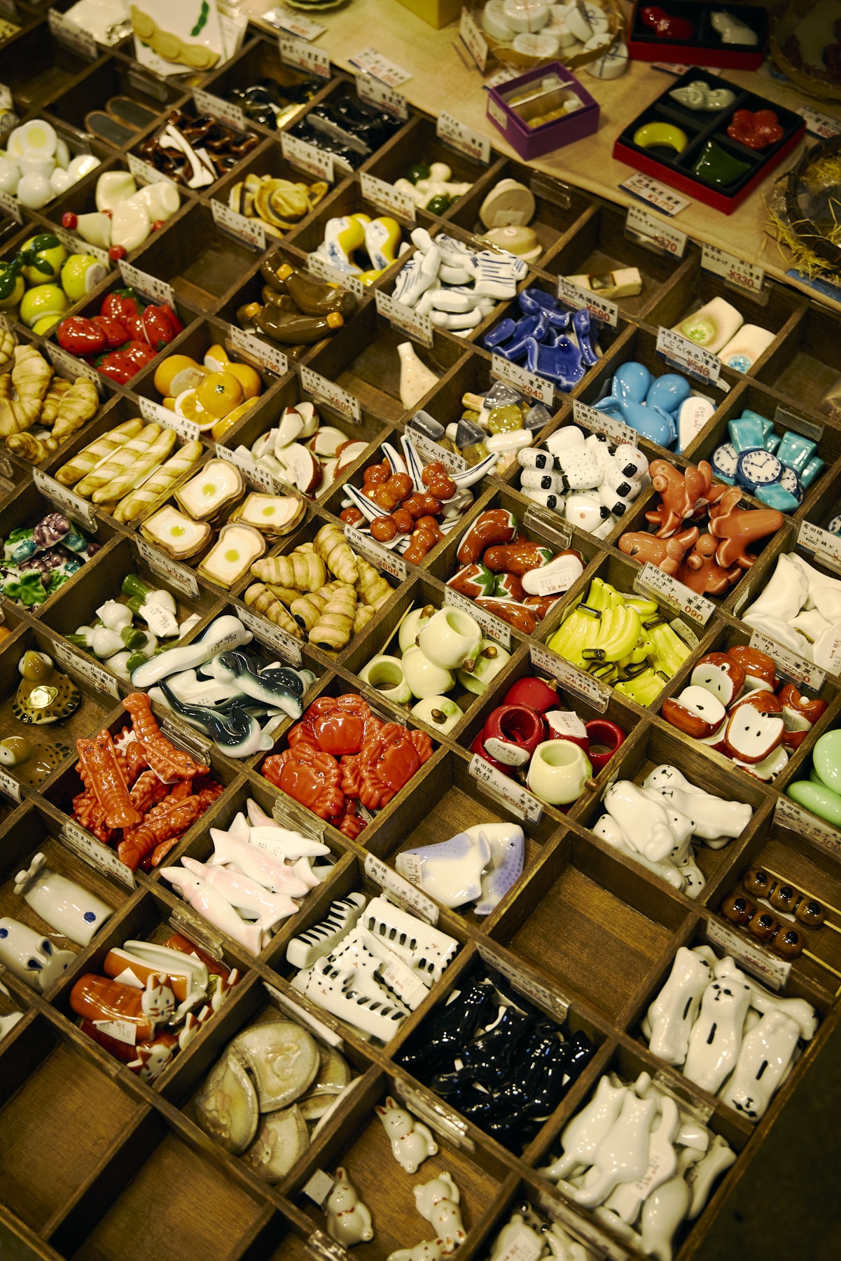 The extensive variety of chopstick rests is a pleasure to browse. Motifs shaped like food and animals are especially popular, and most items are priced under 1,000 yen. Many people also enjoy displaying them as decorative objects.