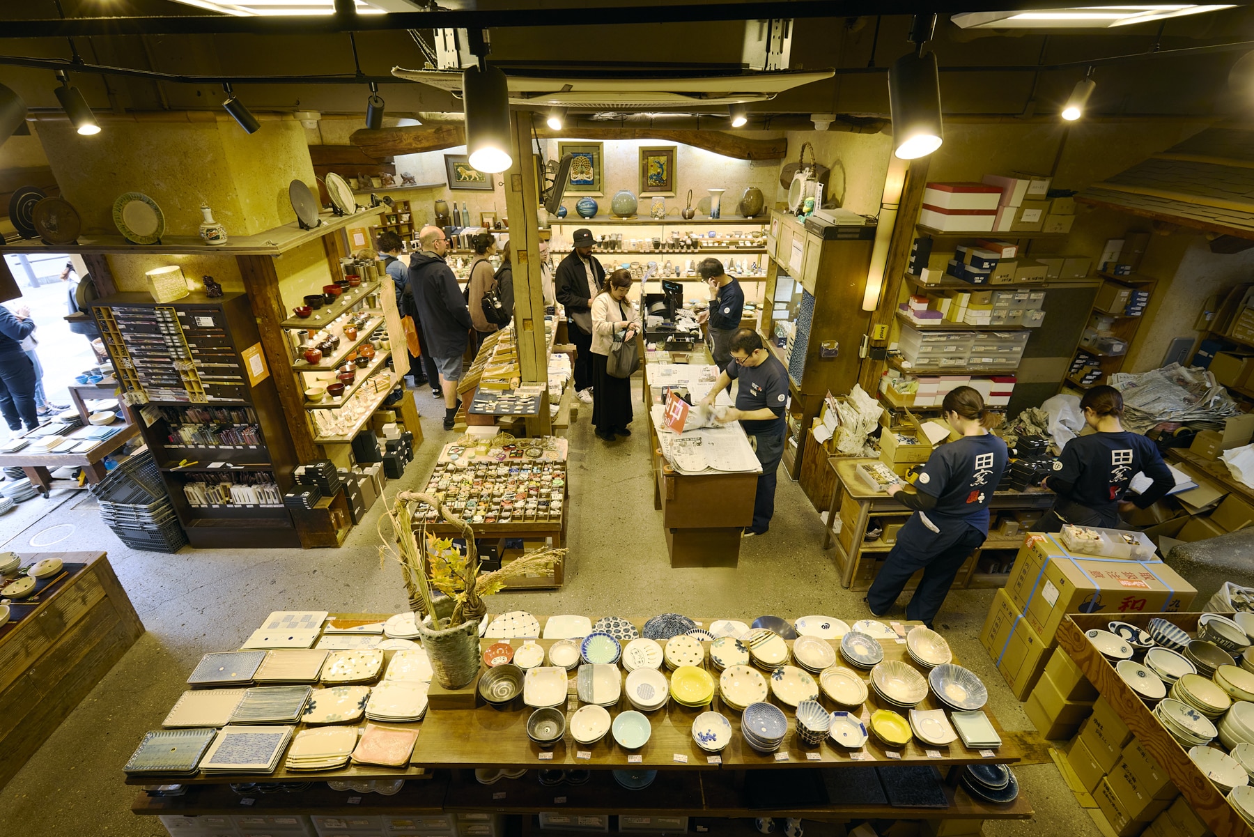 An impressive number of chawan(rice bowls) line the shelves beside the staircase. With a wide range of production areas and price points, visitors are sure to find a favorite piece.