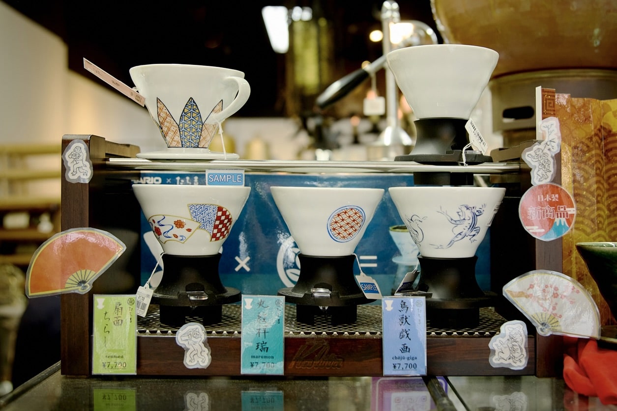 Coffee equipment popular with overseas visitors includes siphons and drippers, which are commonly used in traditional Japanese Kissaten.