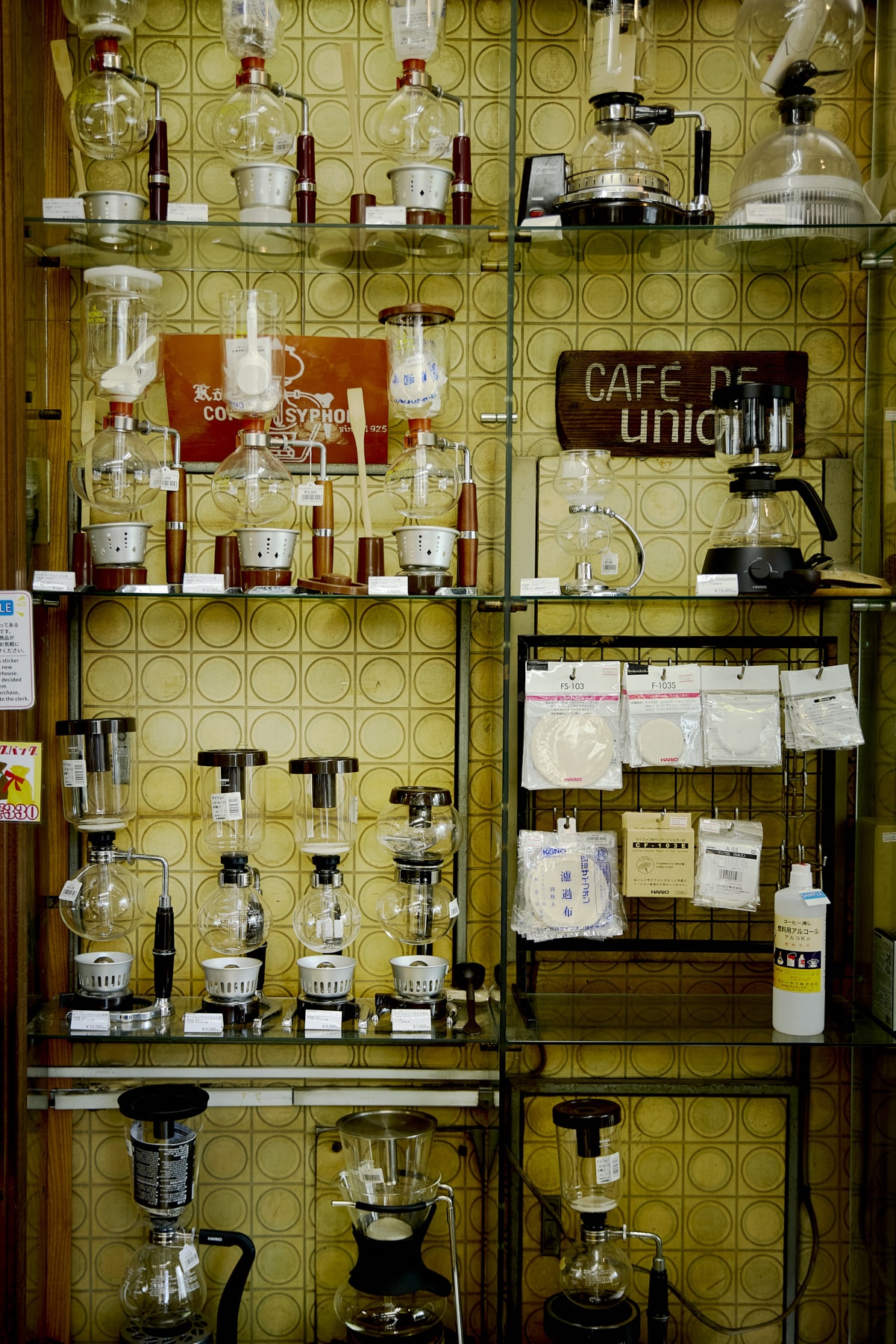 A specialty shop offering a wide selection of coffee equipment used in Japanese Kissaten