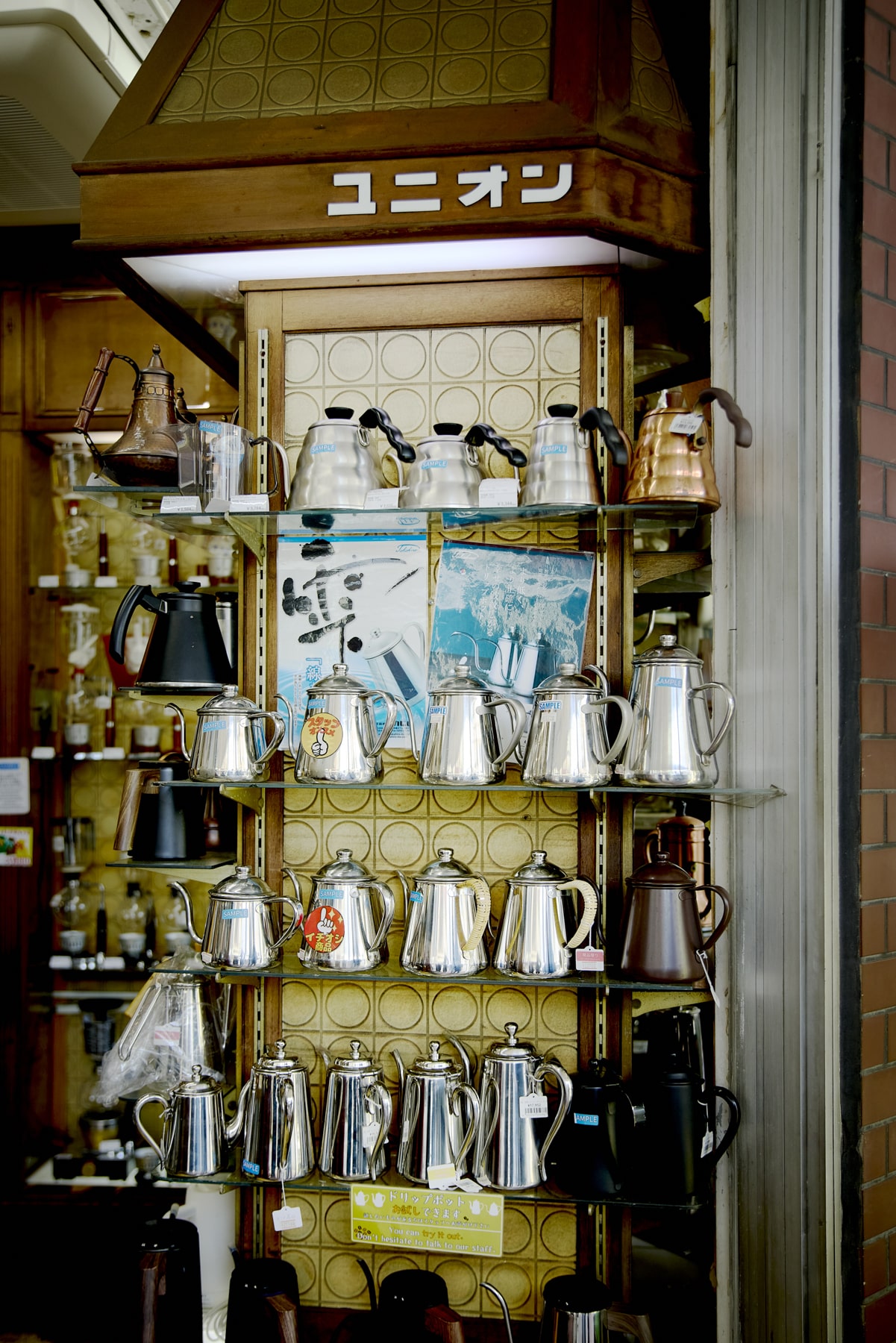 Established in 1962, “Union” is the only specialty store on Kappabashi Dougu Street—an area known for its concentration of cooking and kitchenware shops—that focuses exclusively on Kissaten supplies. In addition to coffee equipment such as siphons, drippers, grinders, and roasters, the store offers a wide selection of cups, pots, and cutlery, making it easy to find everything needed when opening a café or Kissaten. Alongside products from well-known manufacturers, “Union” also offers its own original items. From professional-grade Kissaten tools to coffee goods for home use, the knowledgeable staff provide careful advice tailored to each customer’s needs.