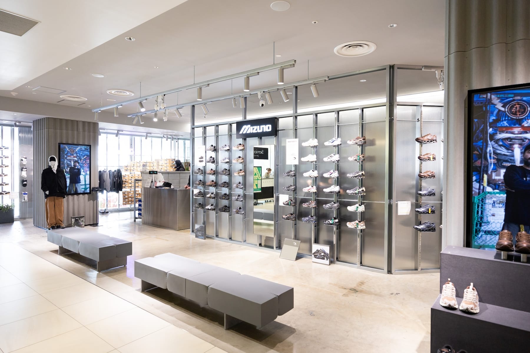 This is a fashion-focused store by "MIZUNO," a long-established sporting goods maker with a history of nearly 120 years. From "Shibuya PARCO," the brand showcases "MIZUNO SPORTSTYLE," a line that blends fashion with technology developed through performance footwear and reworks it into shoes for everyday wear.
