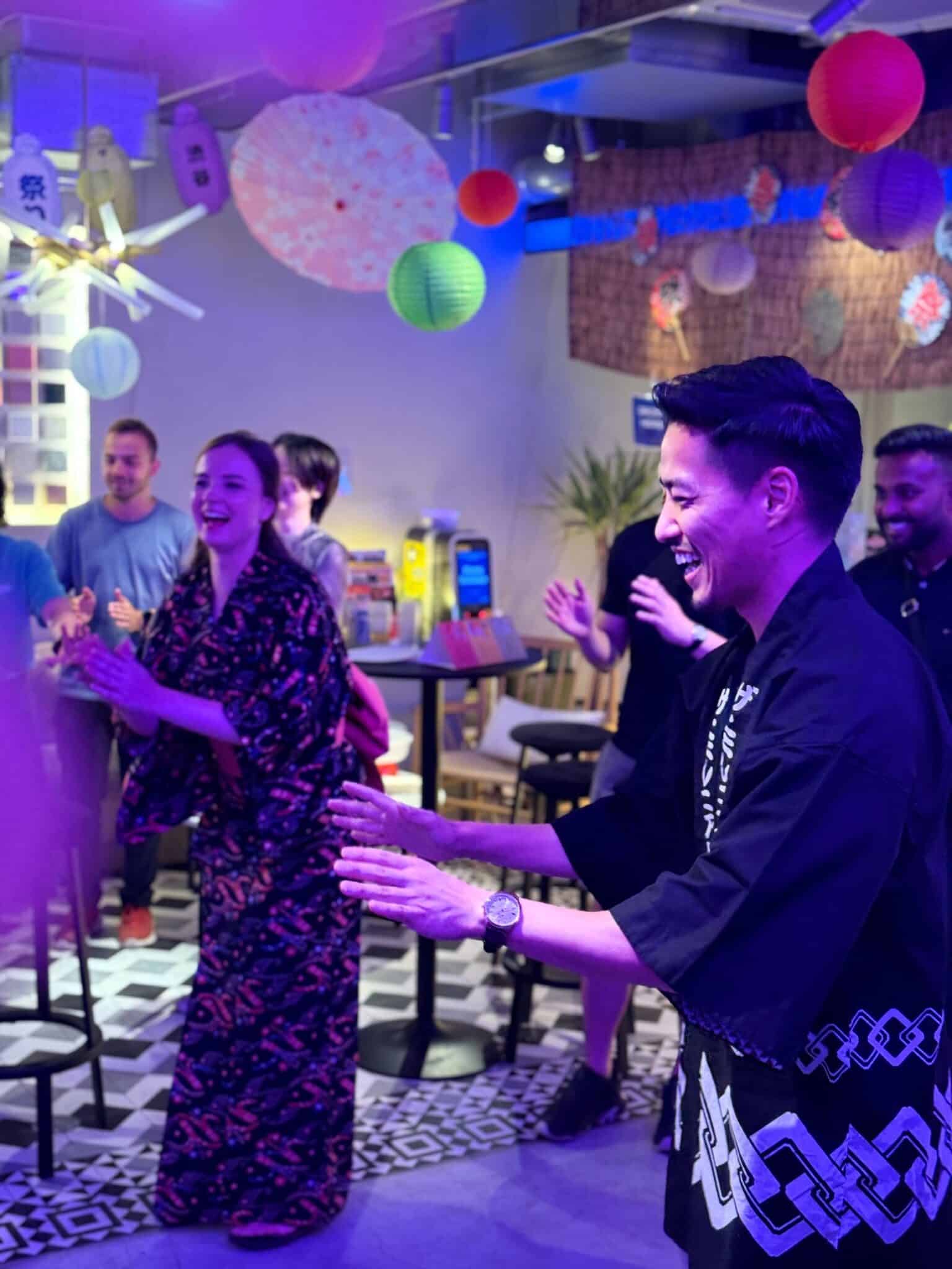 Staff-hosted community event “IZAKAYA NIGHT.” Participants visit local spots such as izakaya (Japanese pubs), sento (public bathhouses), and jazz bars.