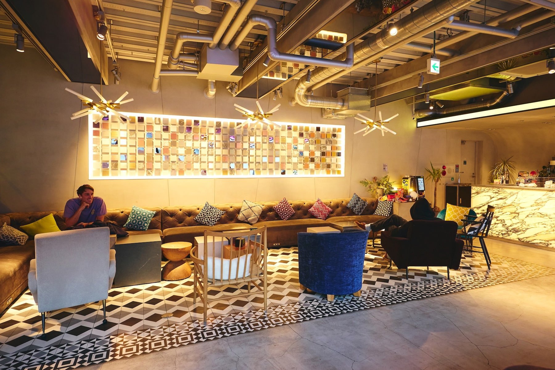 View of the lounge. Staff members also work in the same space, where check-in support and event preparations are handled.