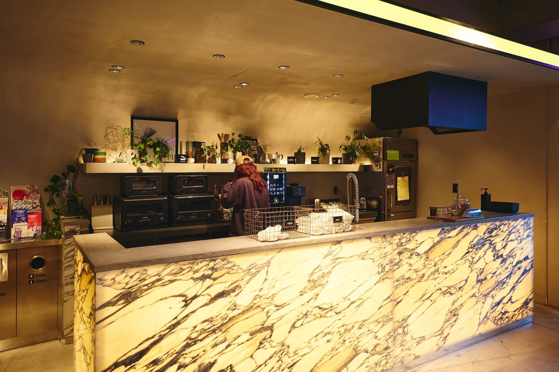 All staff members are able to assist in English. The team includes individuals with diverse backgrounds, such as dancers, DJs, and photographers. Community events are also organized, visiting local sento (public bathhouses), izakaya (Japanese pubs), and jazz bars. Connections formed inside the hotel naturally extend into the streets of Shibuya.