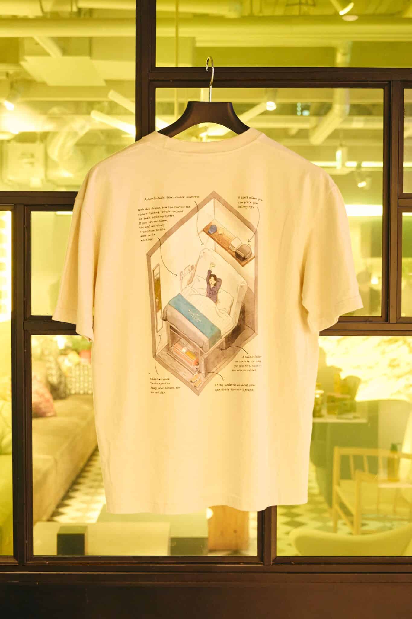 Original merchandise is also available for purchase inside the hotel. The popular original T-shirt (4,000 yen) features a design created by illustrator Enya Honami during an actual stay.