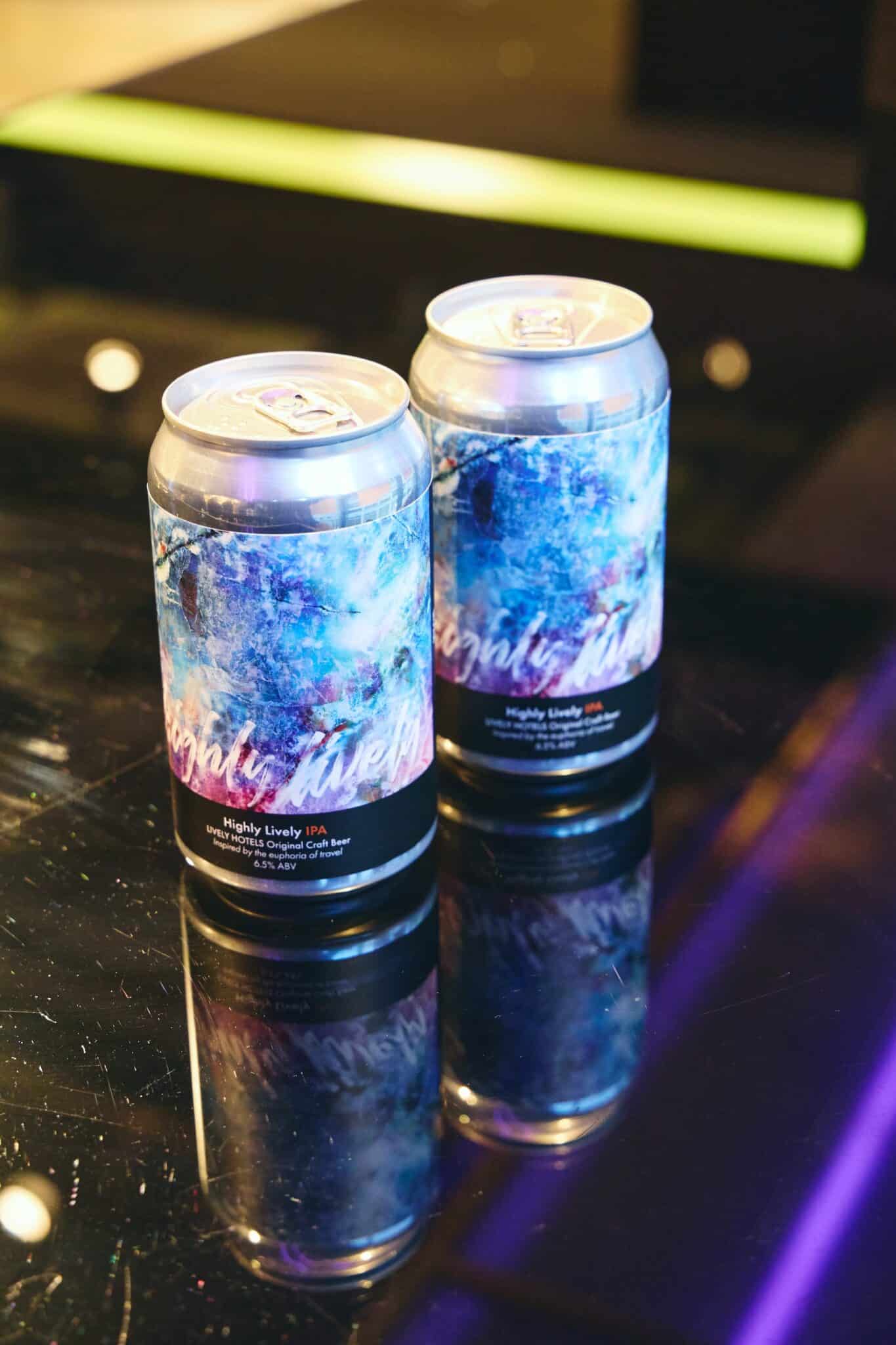Original craft beer, “Highly Lively IPA” (800 yen). This product reflects the brand concept of LIVELY HOTELS. (IPA style, 6.5% alcohol, 350ml can.)