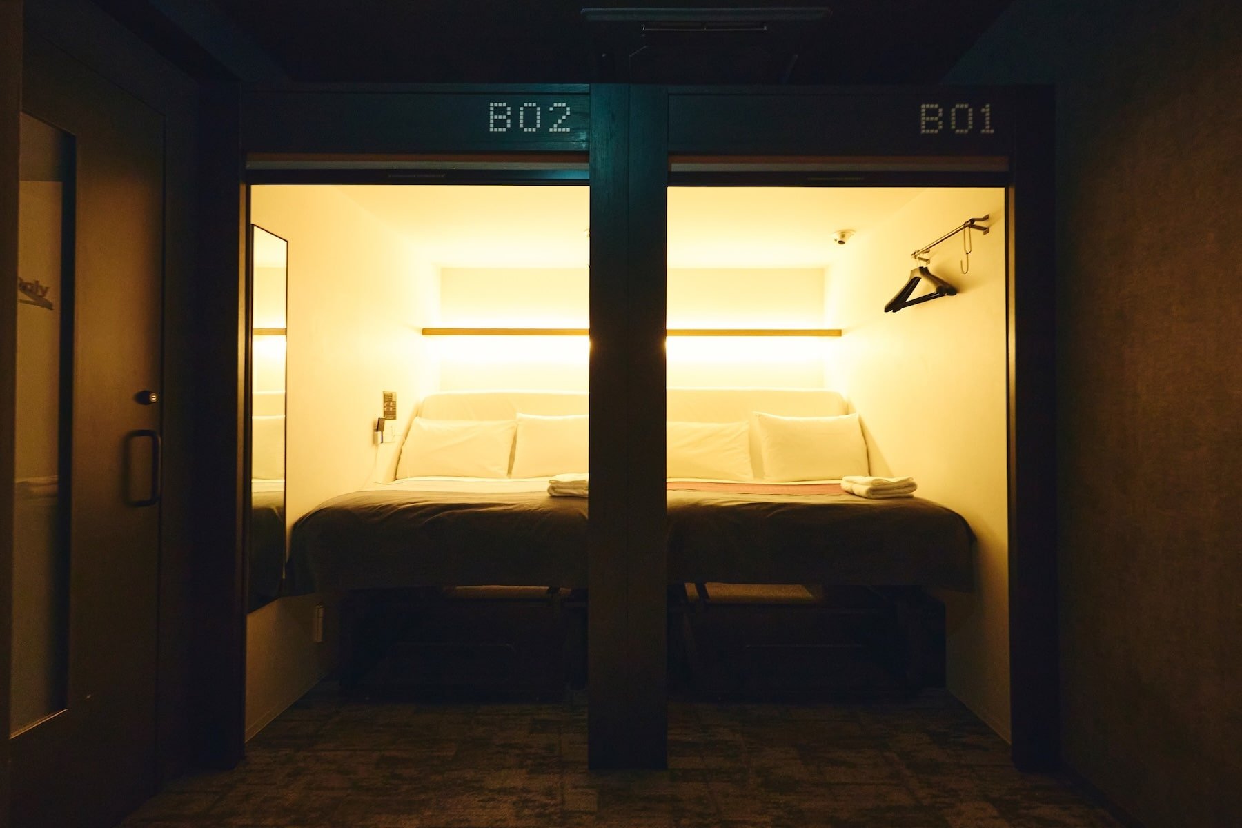 After check-in, guests receive a dedicated key card that grants access only to the elevator serving their reserved “Smart Pod” floor.