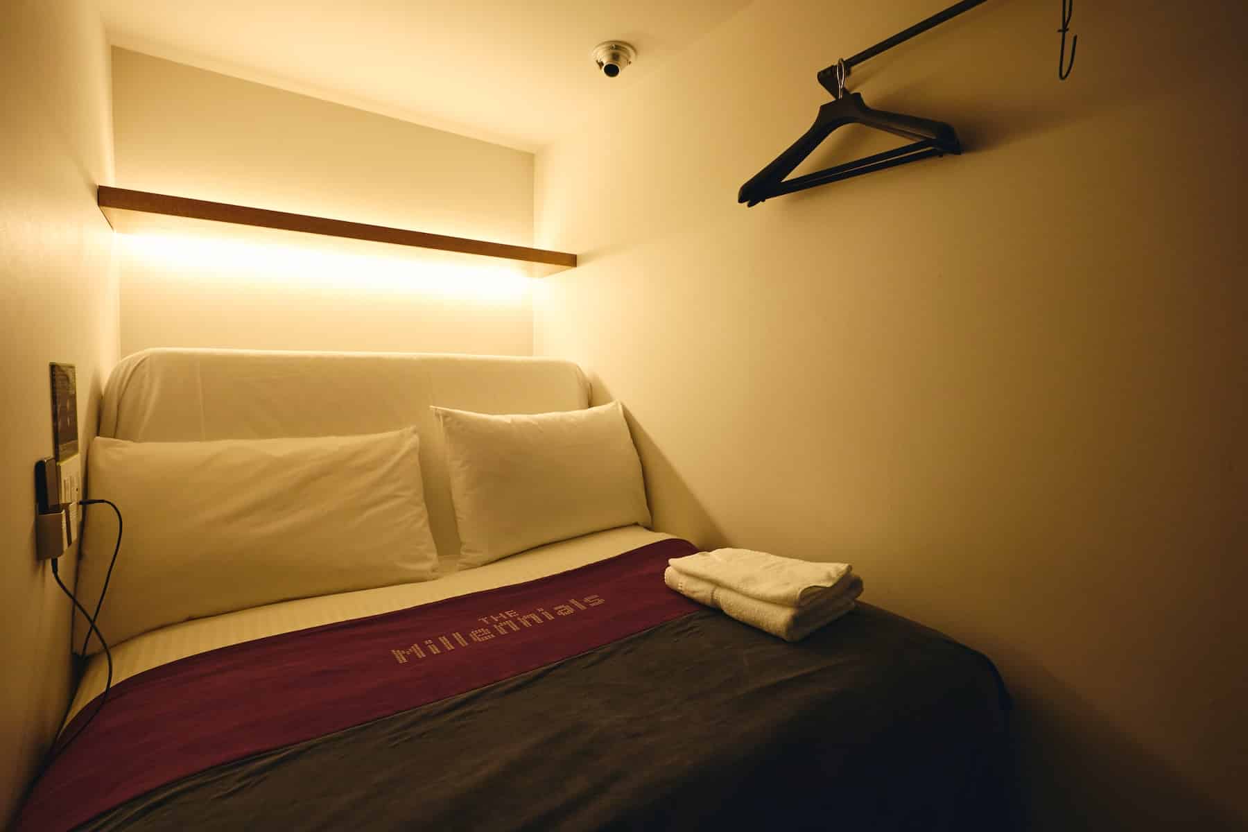The “Smart Pod” features a ceiling height of approximately 2.3 meters. Designed to allow even taller international guests to stand upright, it distinguishes itself from traditional capsule hotels. In sofa mode, there is also sufficient space for changing clothes.