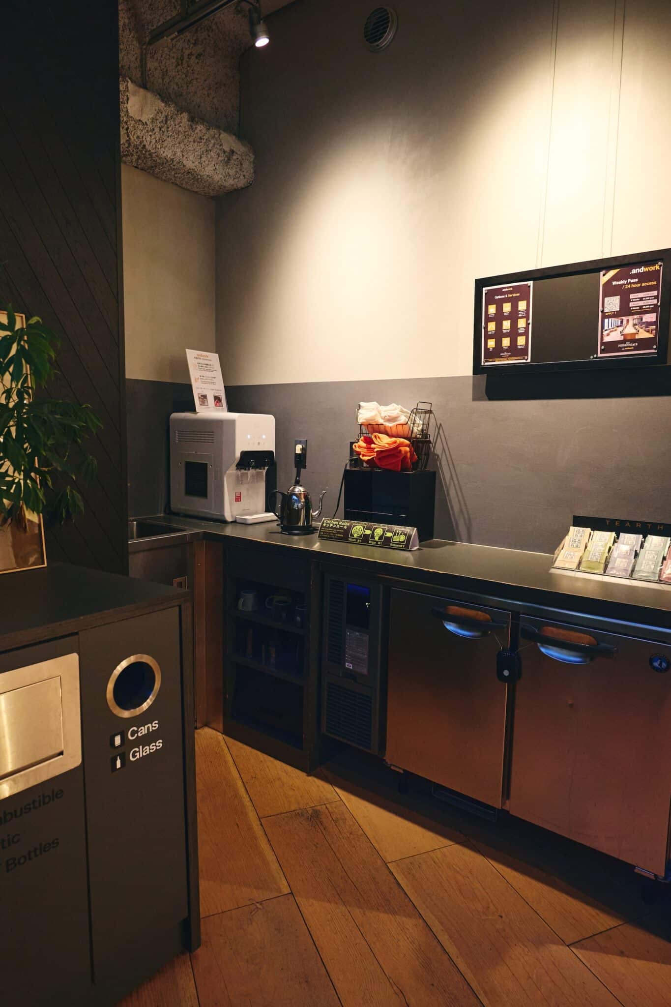 Free drink space in the lounge. *Only beverages are allowed in the 3F coworking space.