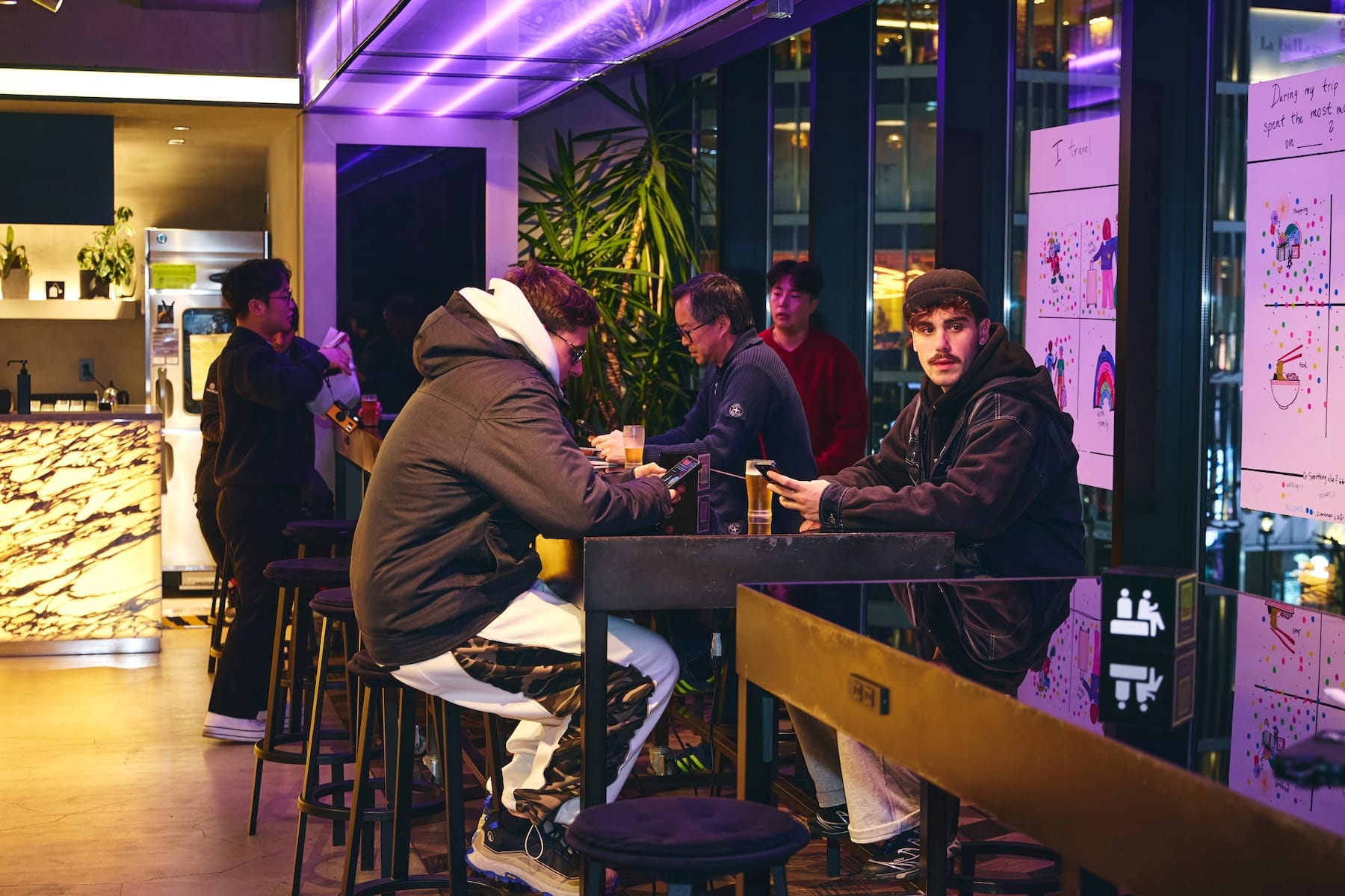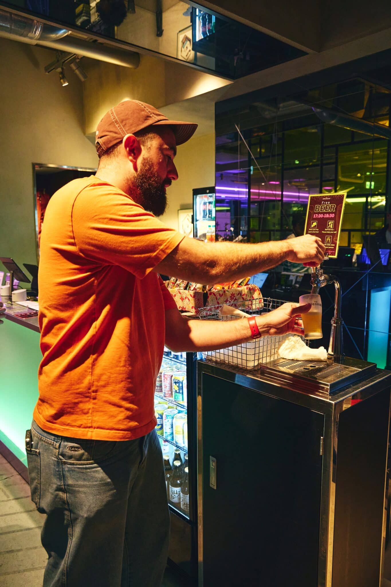 After Free Beer Time, many guests head out into the streets of Shibuya. The lounge functions as a gateway to the city.
