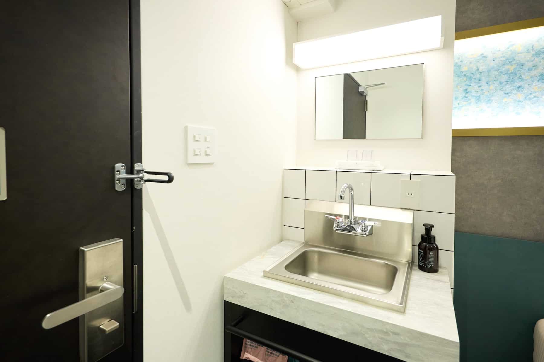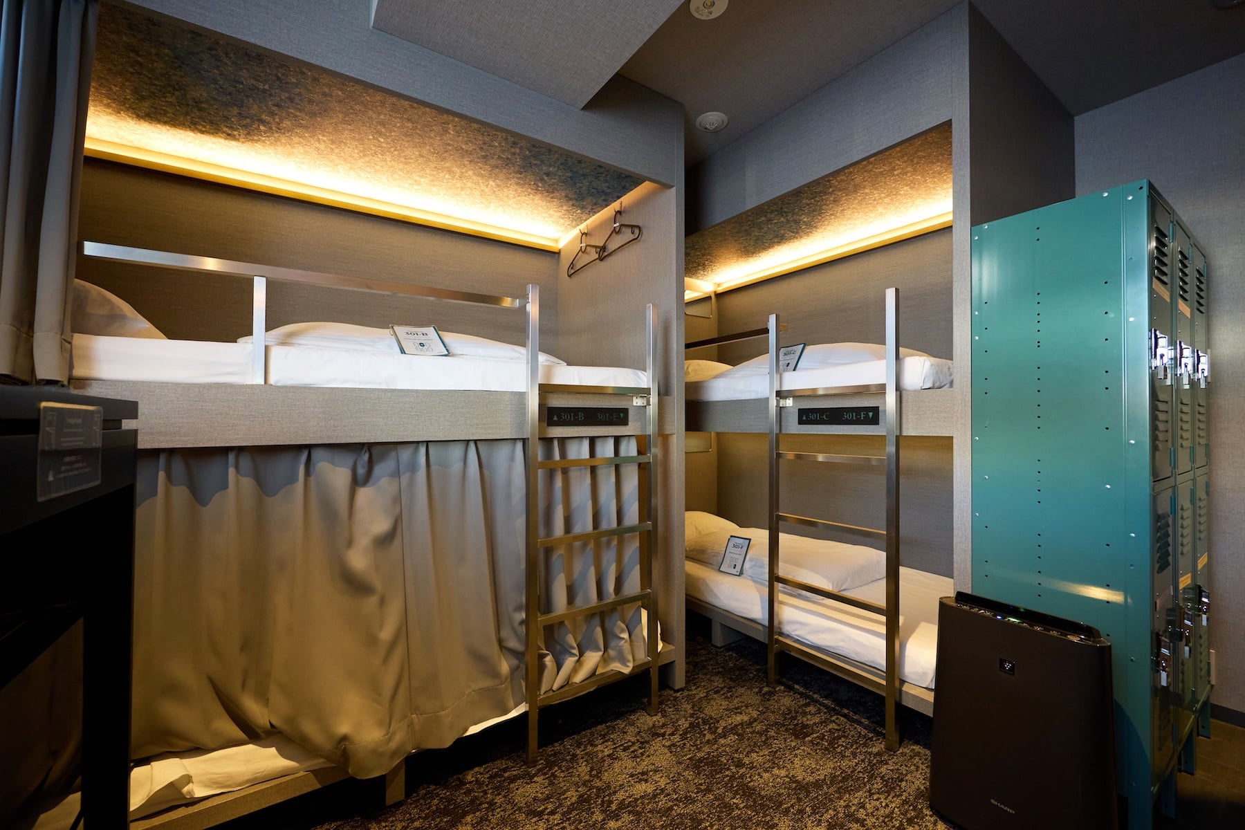 There are 74 guest rooms in total, of which dormitory type and three types of private rooms are available. The most reasonable dormitory type consists of upper and lower bunk beds, and each bed is equipped with a curtain, reading light, and electrical outlet. Lockers with locks are also provided. Shared facilities such as showers, toilets, and sinks are located on each floor from the 2nd to 5th floor, and are suitable for those who want to enjoy socializing like in a hostel and keep accommodation costs low.