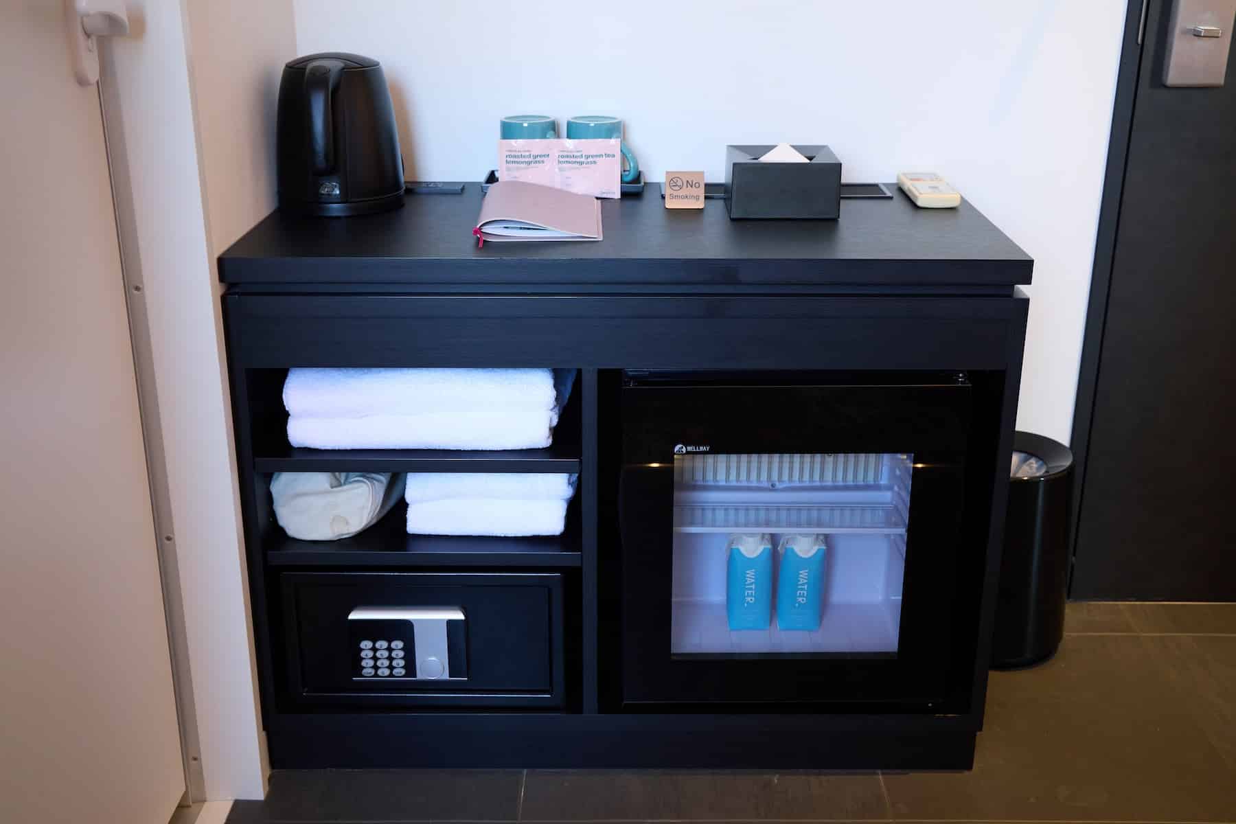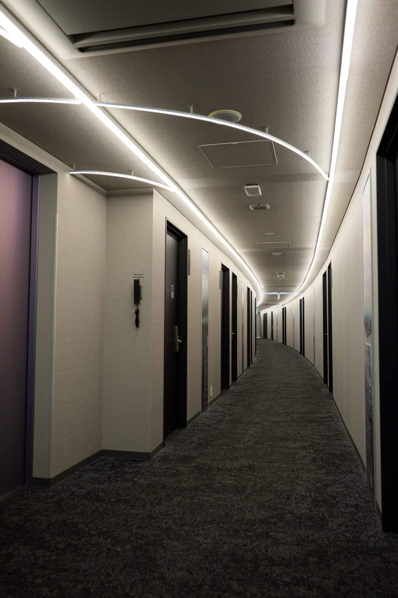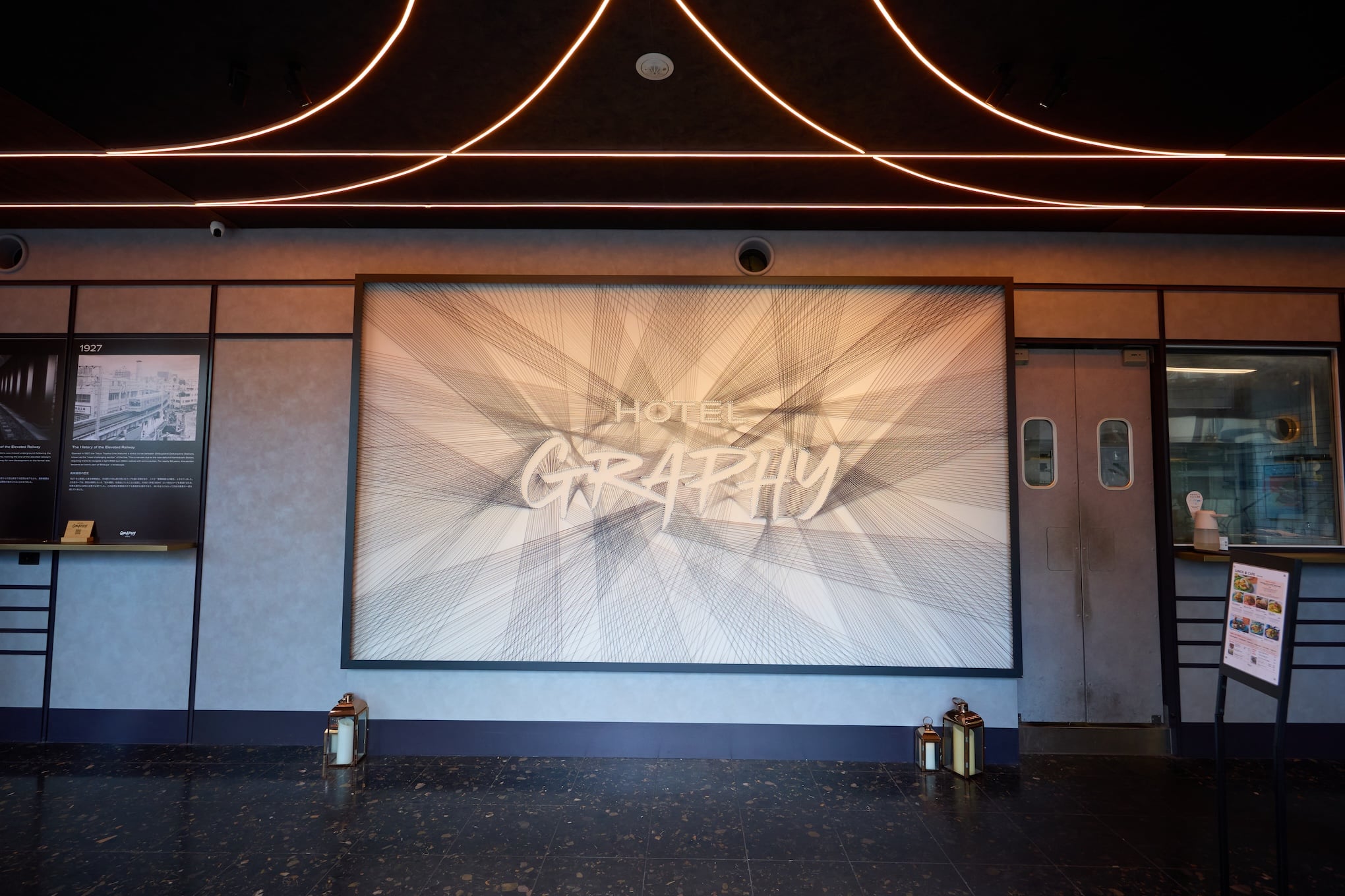 The structure follows the sharp curve that once characterized the railway line. Curved lighting on the lobby ceiling, as well as maps of the line and historical station photographs displayed inside the building, make this history visible. Knowing this background subtly changes how the surrounding streets are perceived. Walking along what was once railway track becomes part of the hotel’s stay experience.
