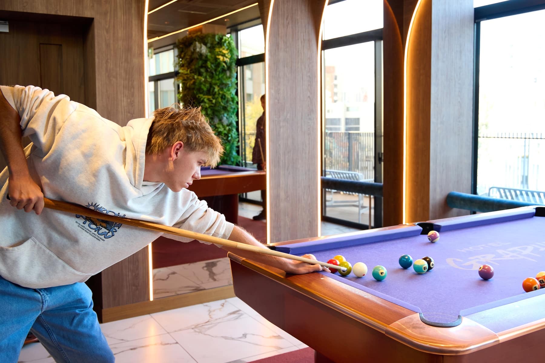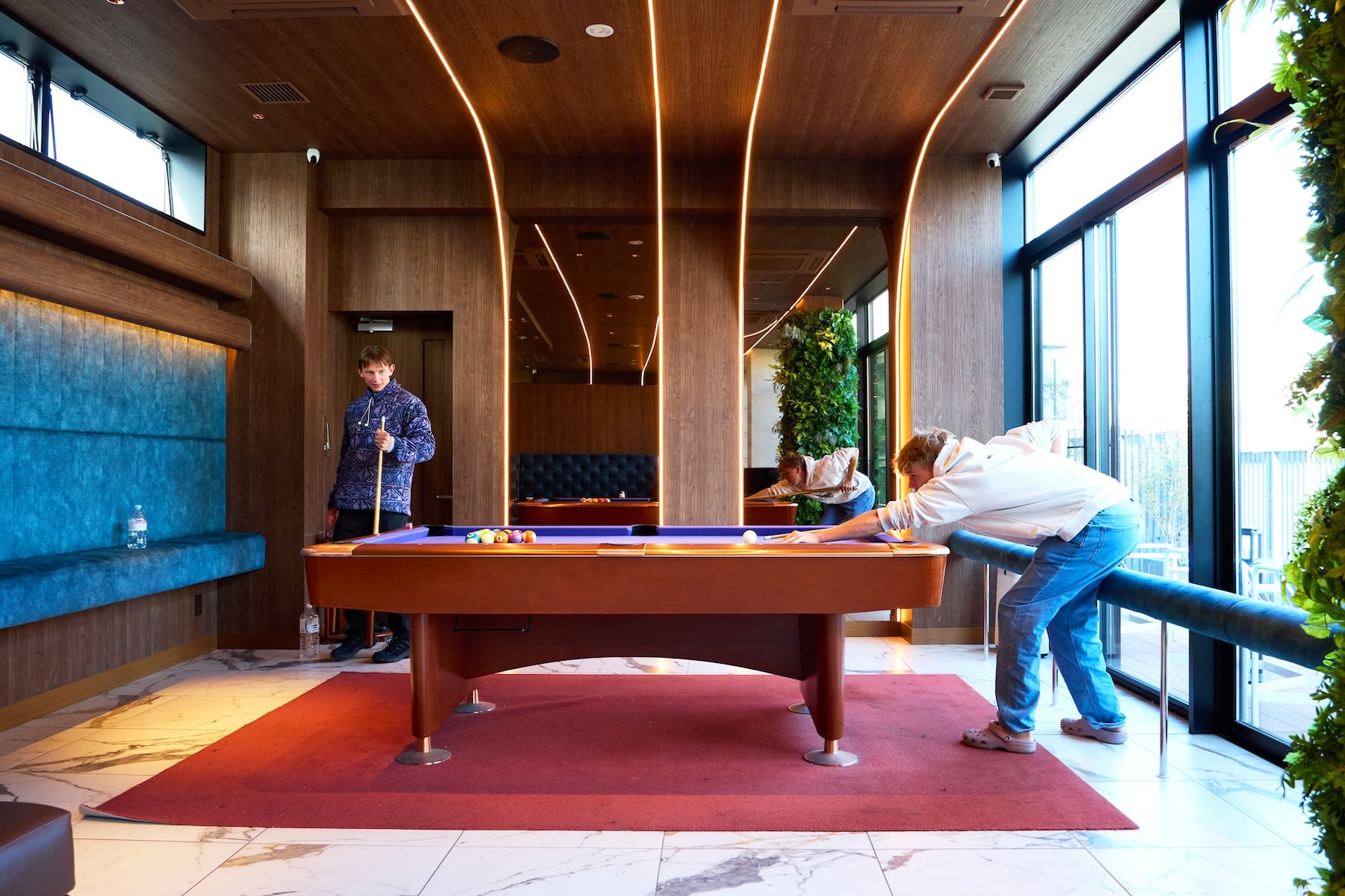 On the seventh floor, there is a guest-only lounge equipped with a billiards table and a terrace, offering complimentary drinks 24 hours a day. Some guests relax there after check-in, while others use it as a space to meet fellow travelers—sometimes even heading out into the city together after connecting in the lounge.