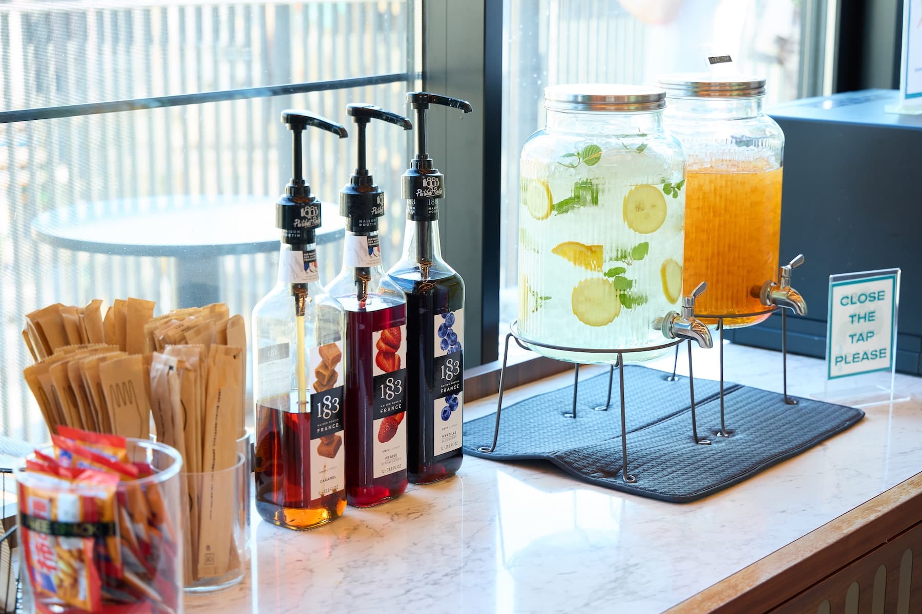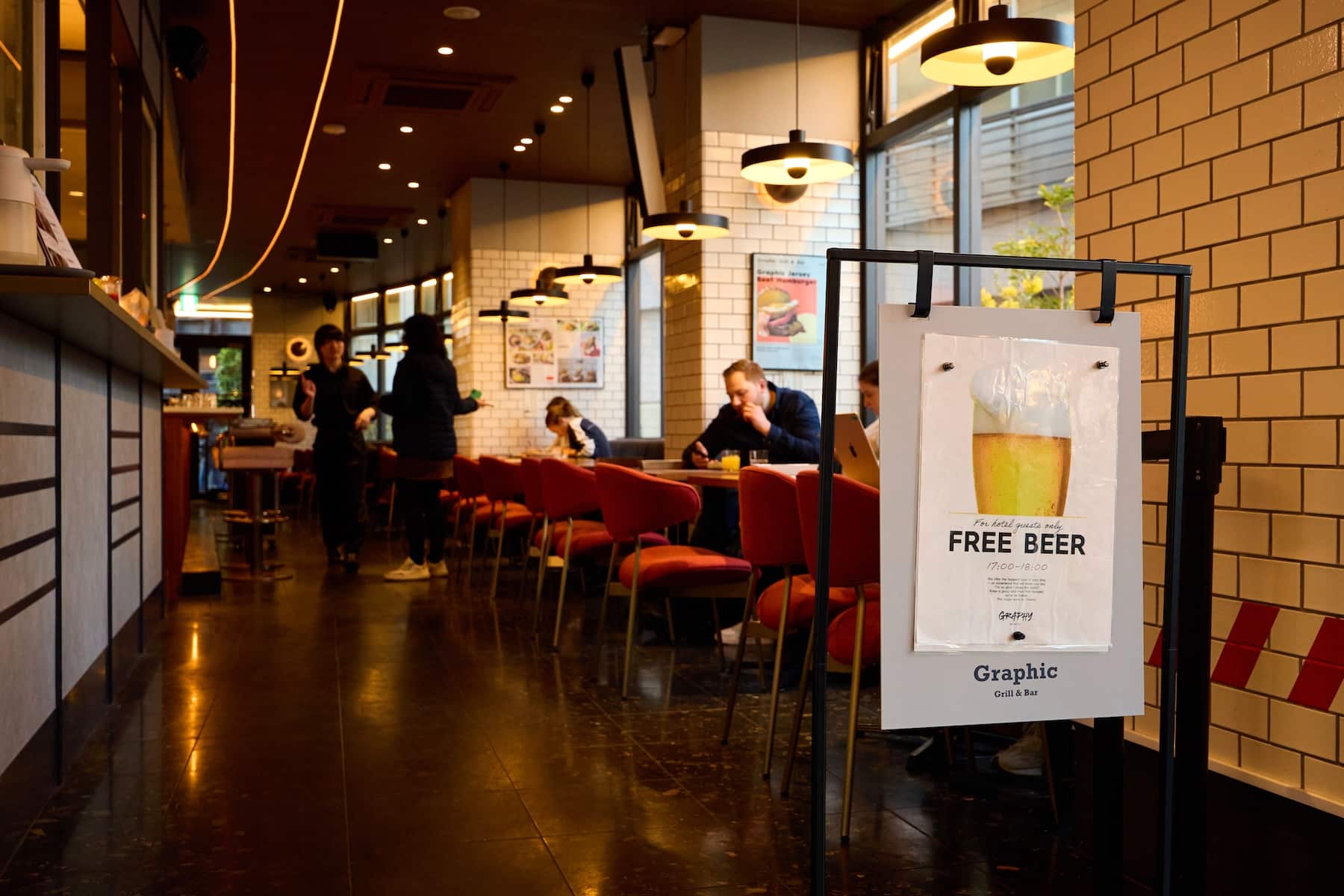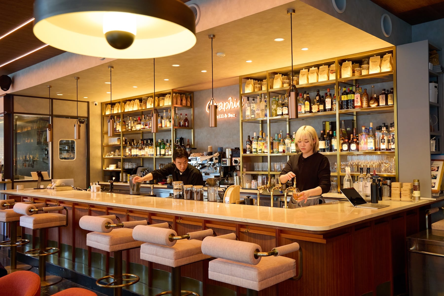 On the first floor is the bar and restaurant “Graphic Grill & Bar,” which is open to both guests and non-guests. For breakfast, it offers menus featuring locally sourced vegetables and bread selections. The concept blends a classic American breakfast with elements of Shibuya, known as a trendsetting district. In the evening, the space operates as a bar, serving cocktails such as the rum-based “Elegant Mai Tai.” While it functions as an in-hotel restaurant for guests, it is also frequented by local residents, allowing visitors to experience Shibuya’s everyday atmosphere.