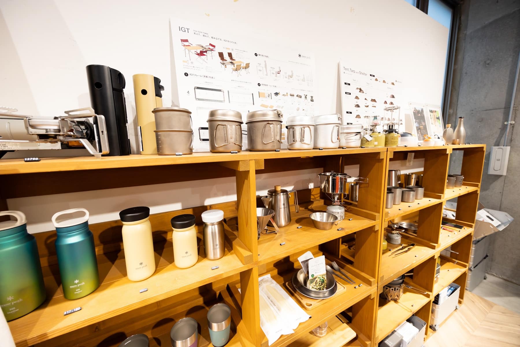 日本のキャンプ文化をリードしてきた『Snow Peak』のアパレル部門の旗艦店も、このエリアの見どころ。ウェアだけでなく、卓越した技術で生み出された高耐久のギアも揃い、日本のシーンを一度に感じることができる。