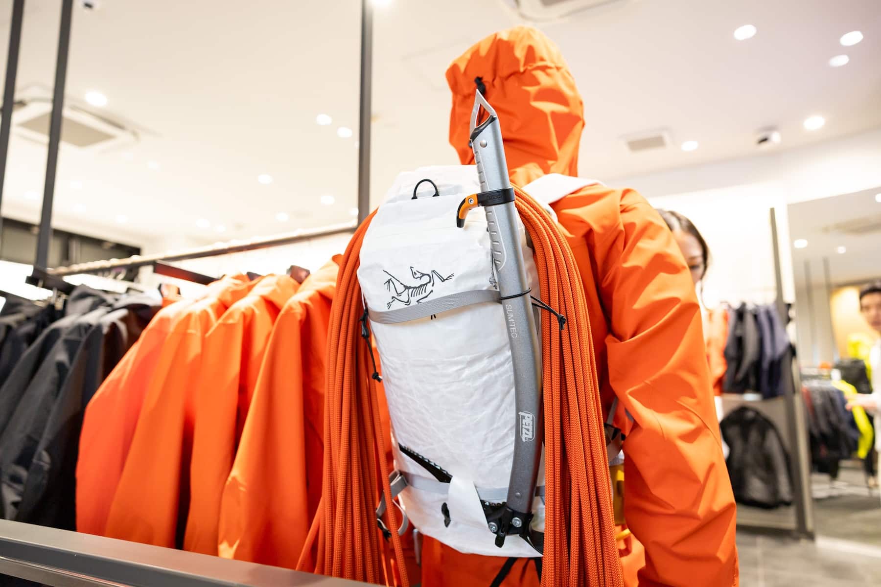 国内外で大人気の『ARC'TERYX』の日本1号店は明治通りにある。本格的な登山用のギアからトレイルランニング用のシューズまで大充実。【※2025年12月撮影】