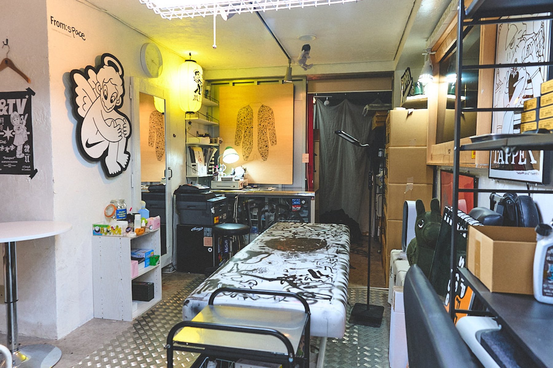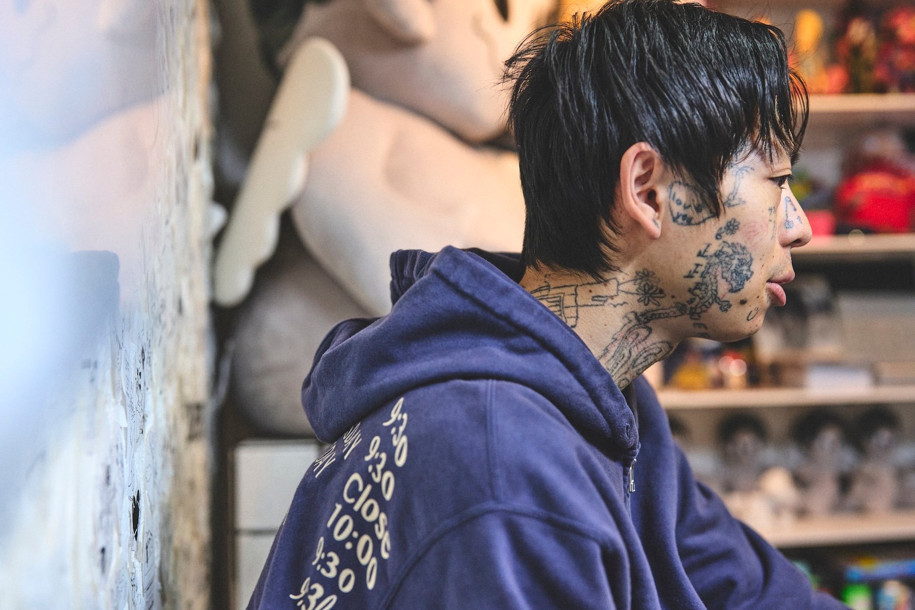 この見た目からマイナスに見られがちですけど、東京は受け入れてくれると言いますか、否定的な方が少ないと感じています。例えば、もし大阪でスタジオを構えていたら、見た目ももっとやばくなってかもしれないし、描く絵も暗いものになっていたかもしれない。それこそブランドとのコラボレーションや作品展示をやったりするという発想にもならなかったと思います。東京だからこそ僕のタトゥーや作品は広がったのかもしれないです。