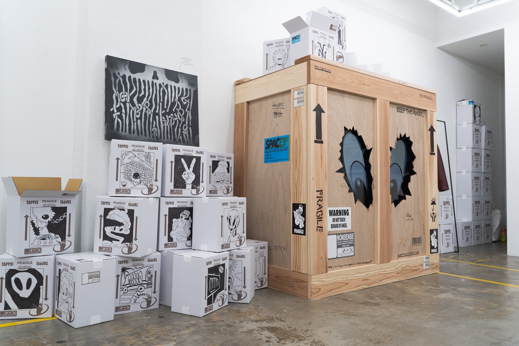 ただ作品を発表するのではなく、ダンボールに作品を描いて展示し、購入者にはそのまま送ったり、空白の額縁の内側にタトゥーを彫ったお客さんを立たせてみたりと、いろいろ実験的なことをやってきました。これは観に来てくれた人に楽しかったなと感じてもらいたくて。テンション上がってハッピーな気持ちで帰ってもらいたいんですよね。次は韓国で展示する予定で、日本とはまたアートへの考えも違うだろうから模索しています。海外では今後もいろいろ発表したいですね。