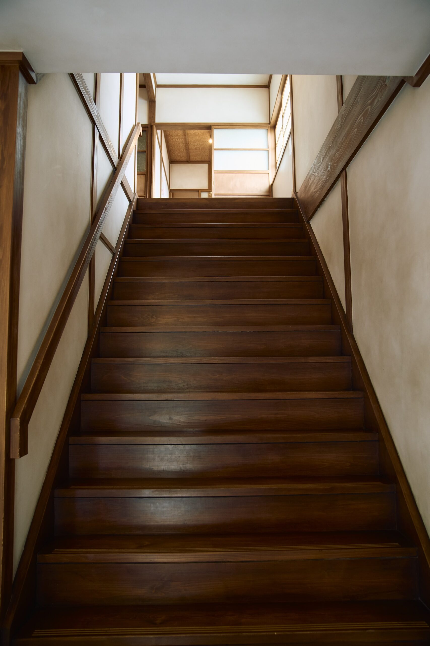2階の展示へと続く階段は、歩くたびにギシギシと軋む。安全面に配慮しつつ、音まで当時の様子を再現された。