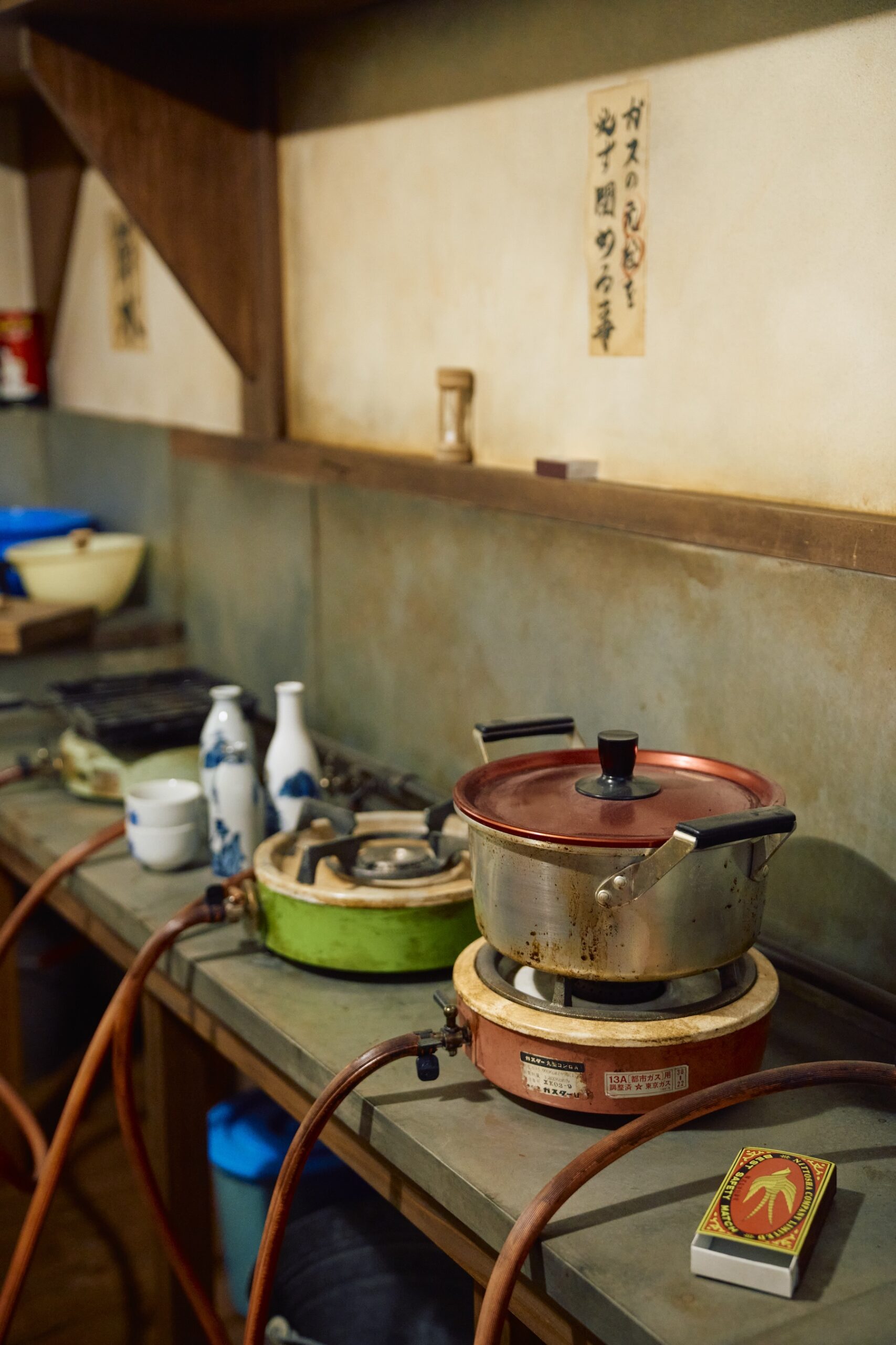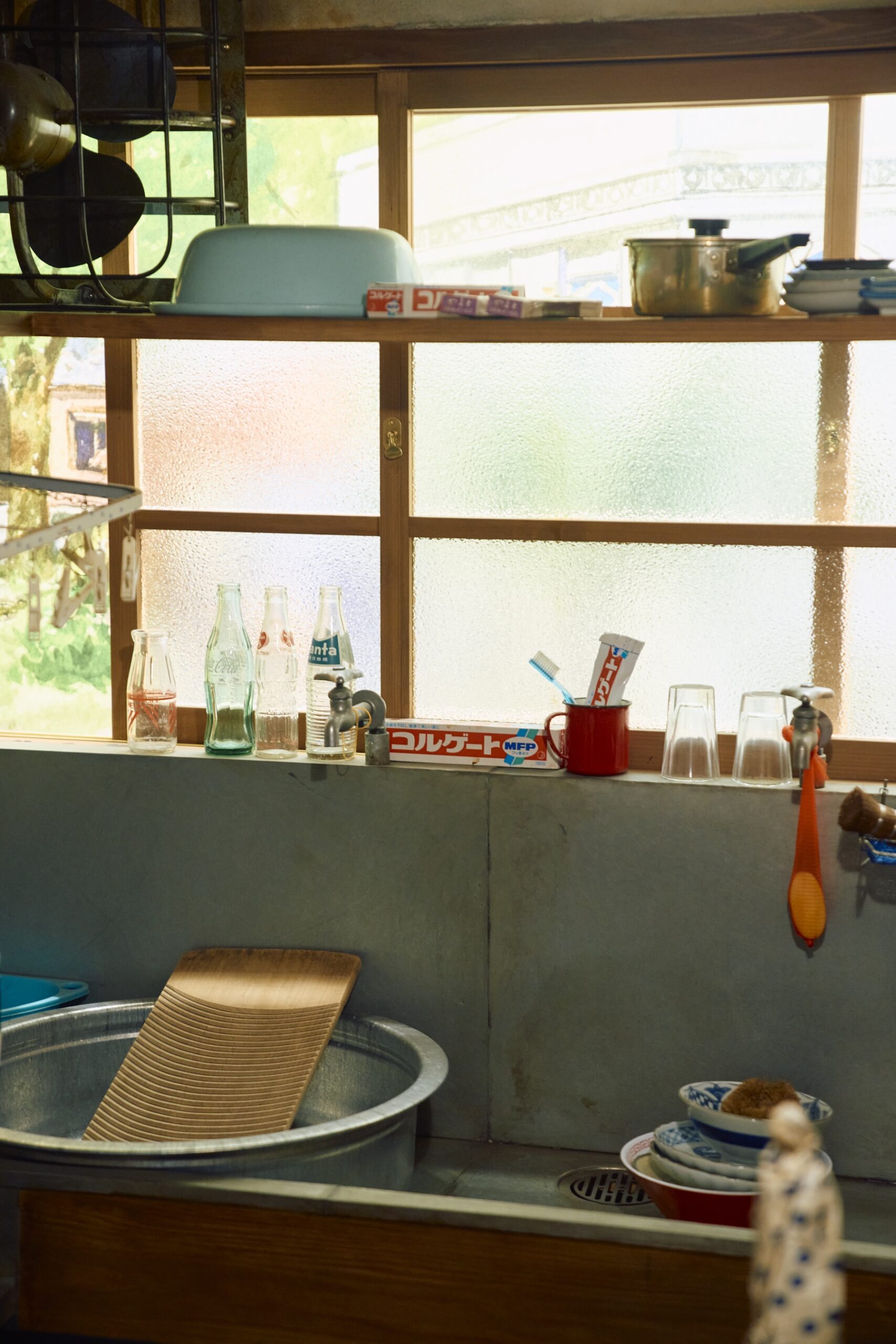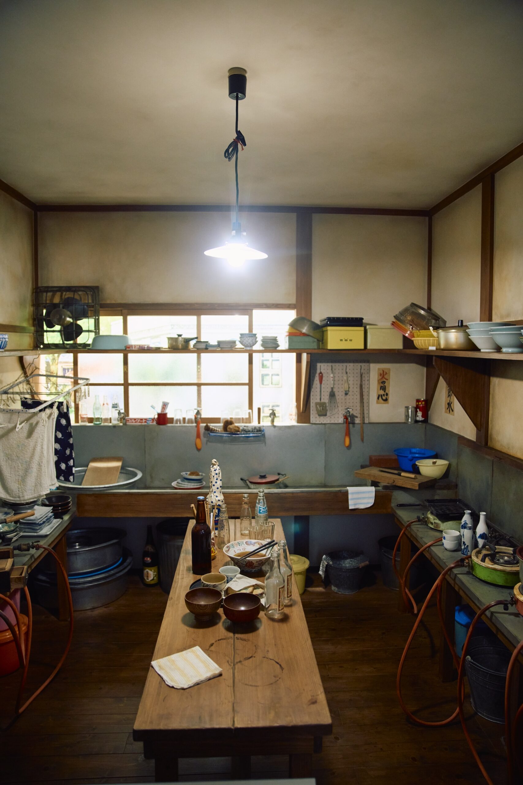 築10年ほど経過した頃の『トキワ荘』をイメージして再現された建物は、昭和20~30年代の日本の木造アパートの雰囲気をリアルに感じられます。外観は当時の木造アパートそのものですが、実際はなんと鉄骨造。木造らしく見せるため、鉄骨を内壁と外壁の間に隠す形で二重構造になっています。さらに、階段が“ギシギシ”と軋む音を再現したり、炊事場やトイレの使い込まれた様子を「エイジング」という技法で表現したりと、至るところに昭和を感じさせる工夫がいっぱいです。