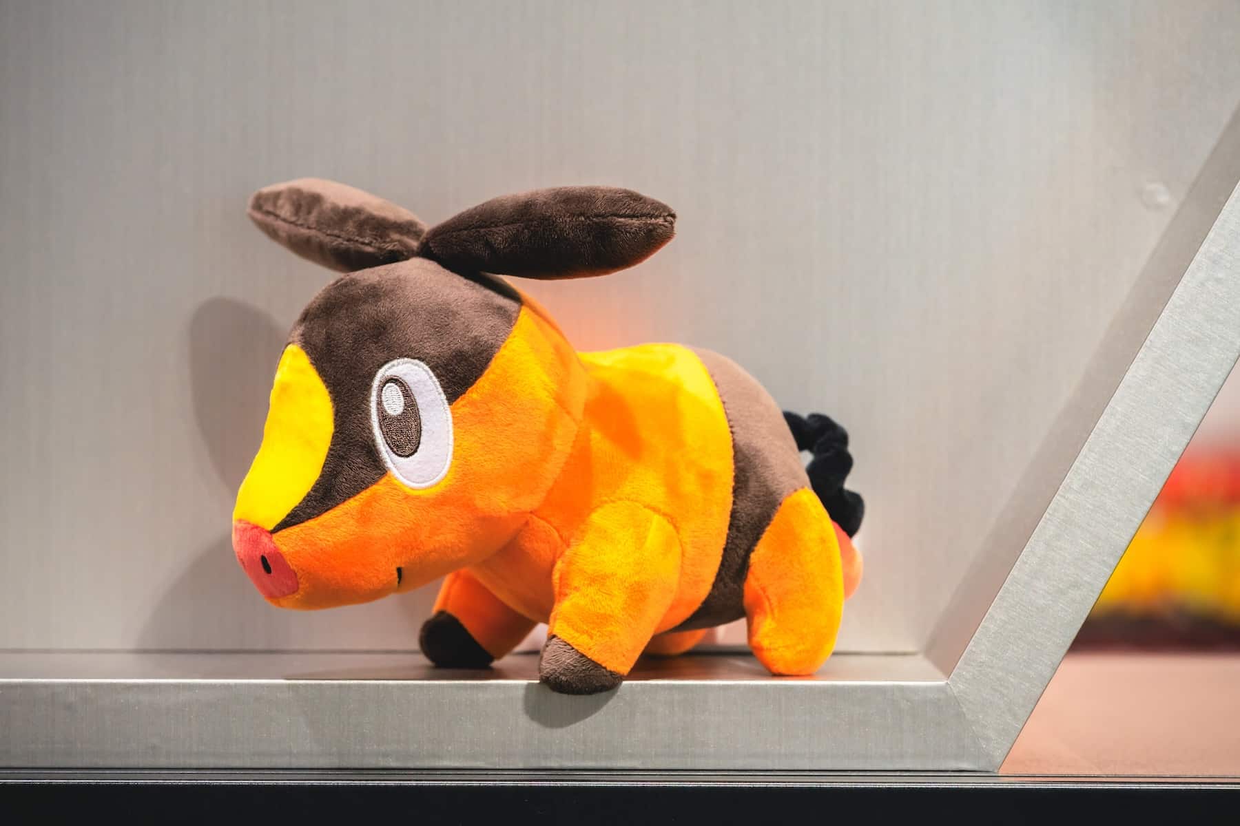 グッズで注目したいのは、ぬいぐるみの品ぞろえ。最初の3匹のポケモンからメガシンカしたポケモンまで、とにかく種類豊富です。