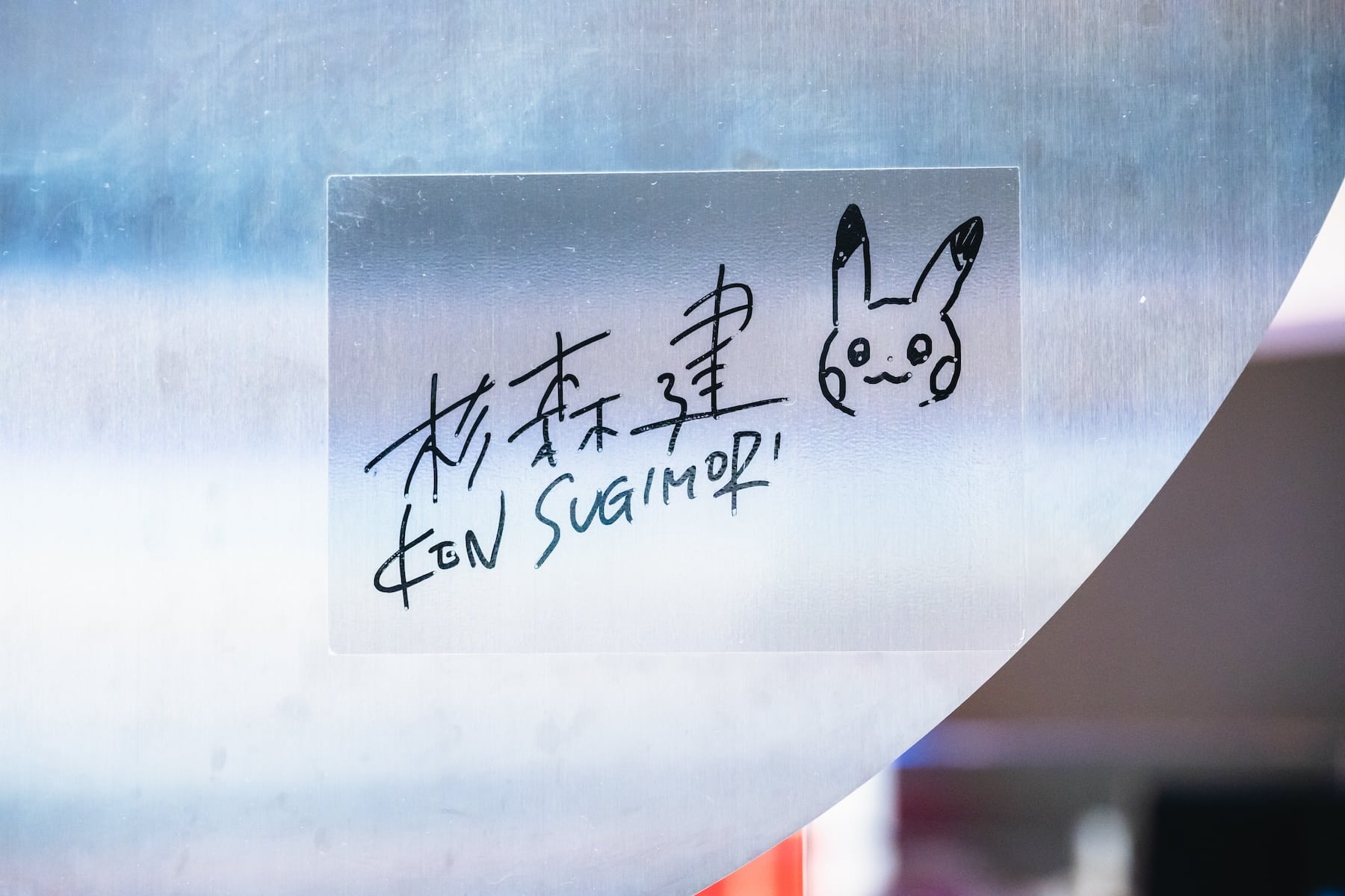売り場の一画には、ゲーム『ポケットモンスター』シリーズの生みの親である株式会社ゲームフリークの創設メンバーであり、公式イラストやアートディレクションを手がけてきた杉森建さんのサインが。