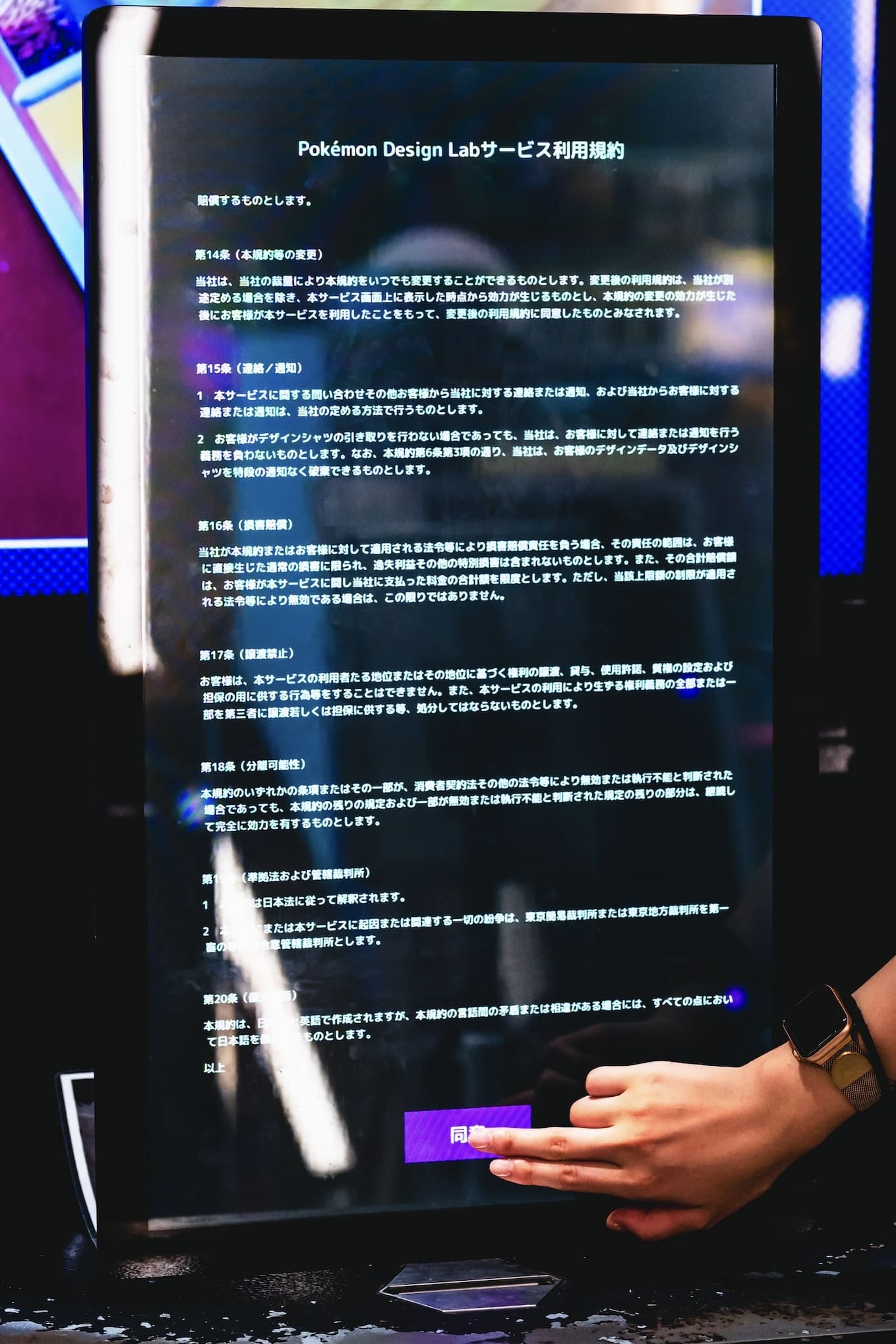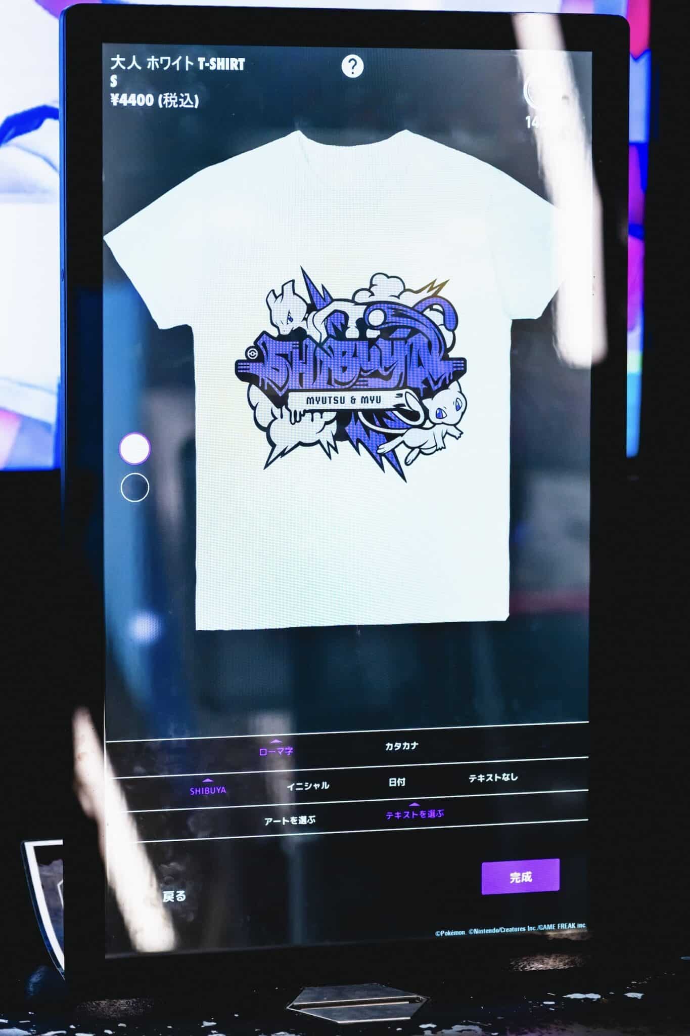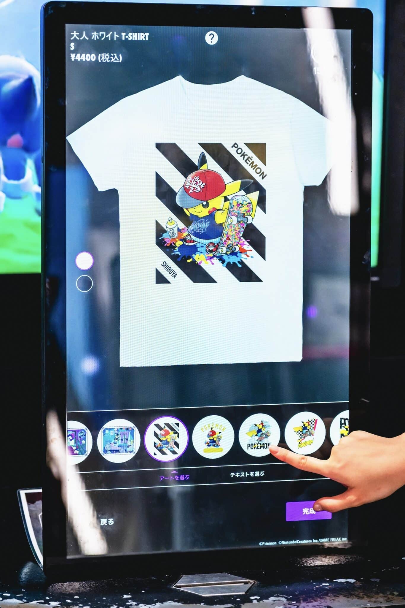 オーダー画面は、日本語または英語を選択可能。混み合うことも多いので、早めの時間に来店するのがおすすめです。東京を訪れたらまずここに立ち寄り、作ったTシャツを着て旅行を楽しむという人もいるとか。デザインは新しく発見されたポケモンが、キャンペーンや季節に合わせて順次追加されているので、訪れるたびにチェックしてみましょう。