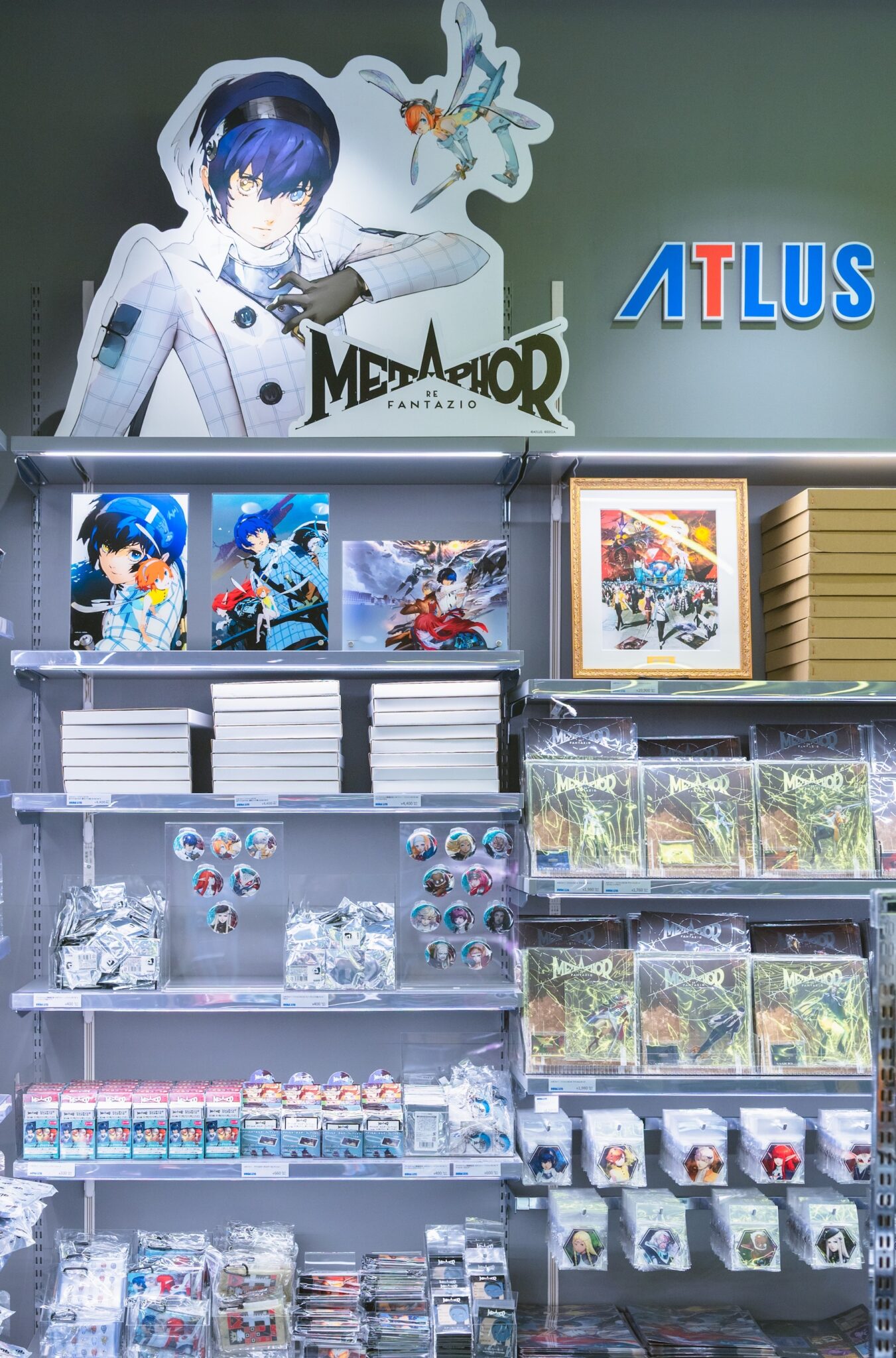 子会社のアトラスから2024年にリリースされた『メタファー:リファンタジオ』のグッズも。『ペルソナ3』、『ペルソナ4』、『ペルソナ5』を手がけたクリエイターたちによるゲームです。